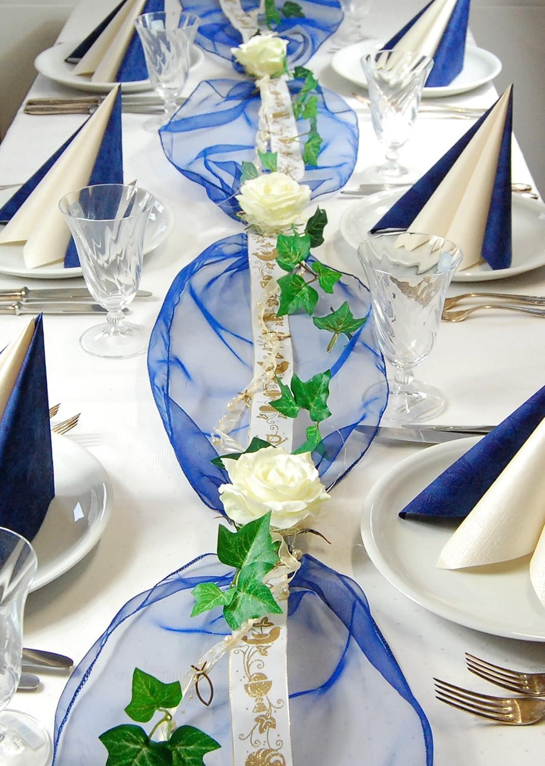 - 2 x Organzaläufer 270 x 30 cm; marineblau; rundumgekettelt;