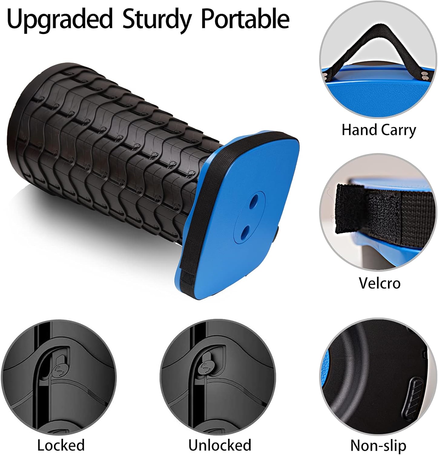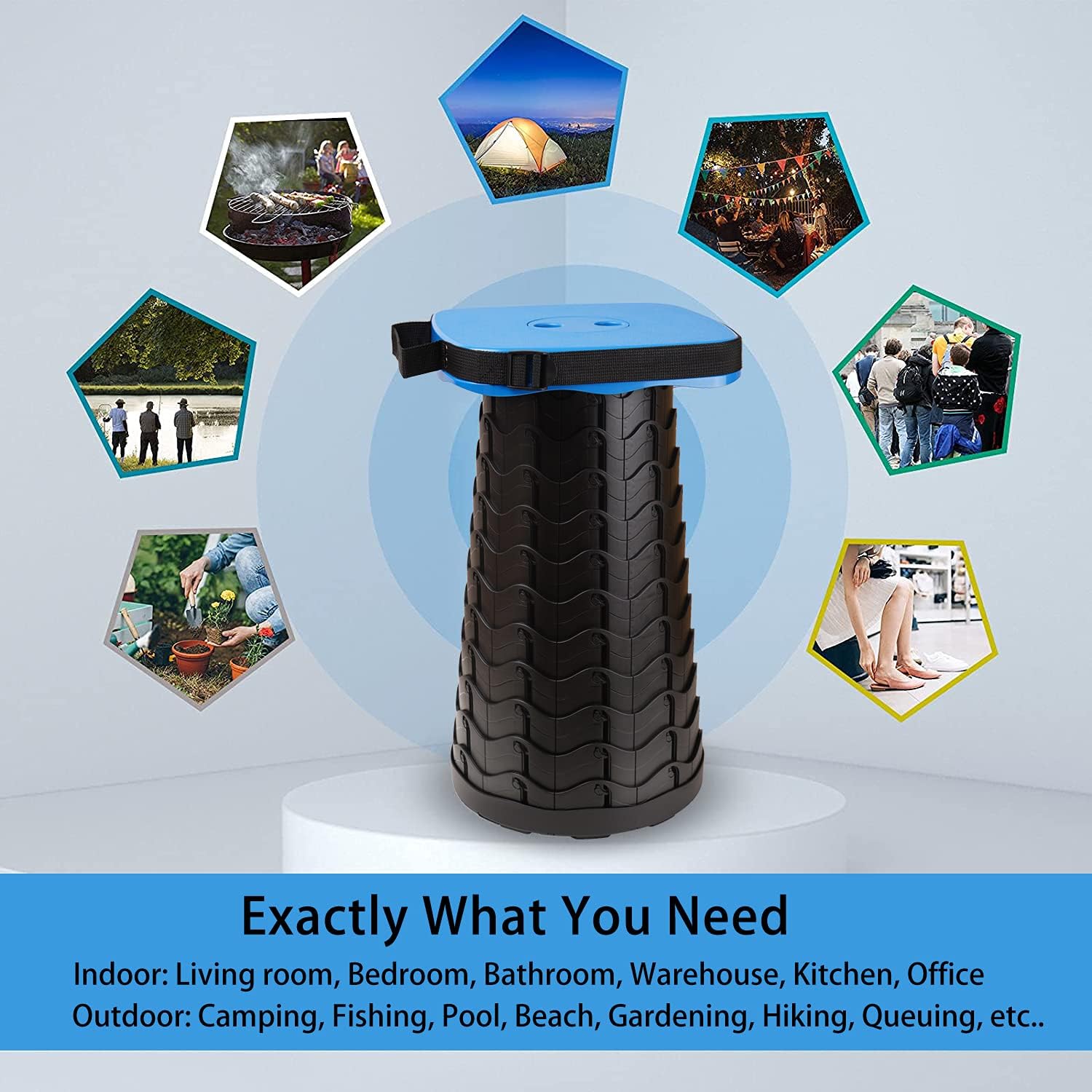 - 【12 Höhen verstellbar】Dank der patentierten Fischschuppen-Struktur kann dieser tragbare, einziehbare, zusammenklappbare Hocker leicht geöffnet und in einer gewünschten Höhe verriegelt werden, um innerhalb von 2 Sekunden zu verwenden, indem er ein