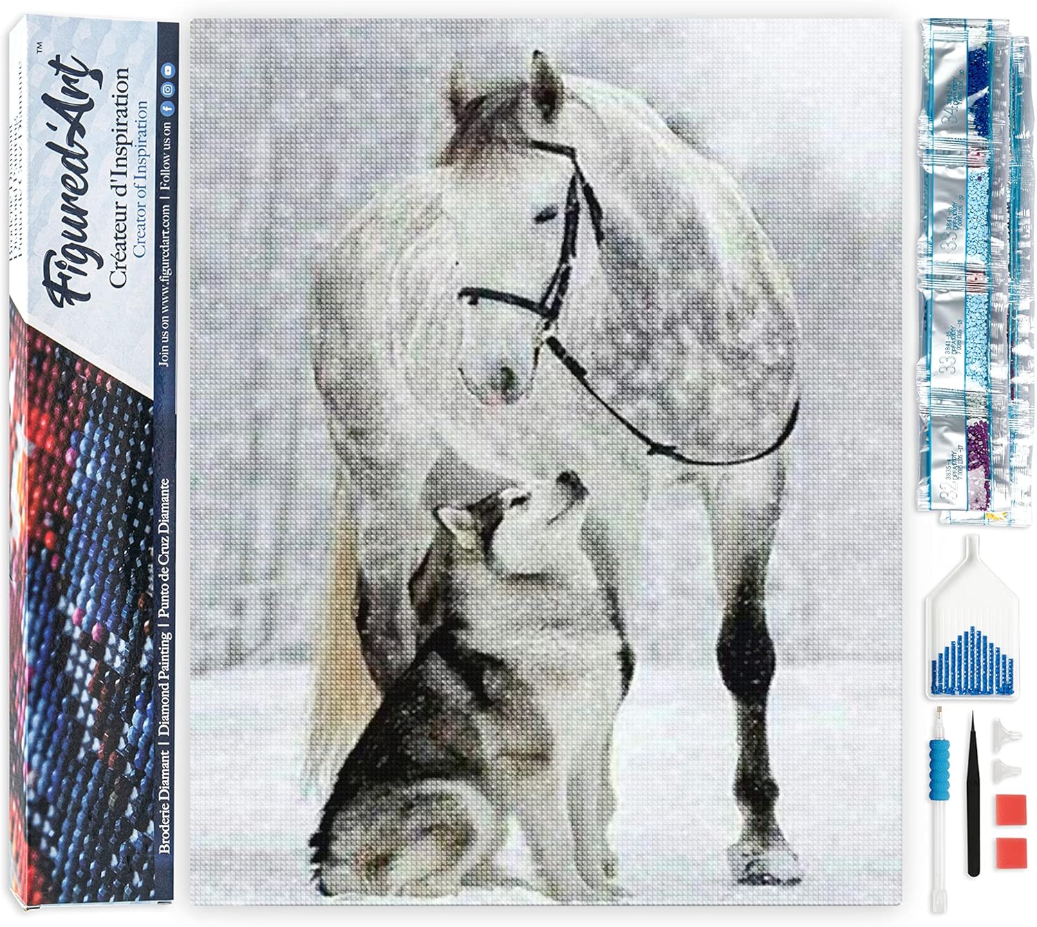 Figured'Art Diamond Painting Erwachsene 40x50cm Ganze Leinwand gerollt Pferd und Wolf im Schnee 5D B