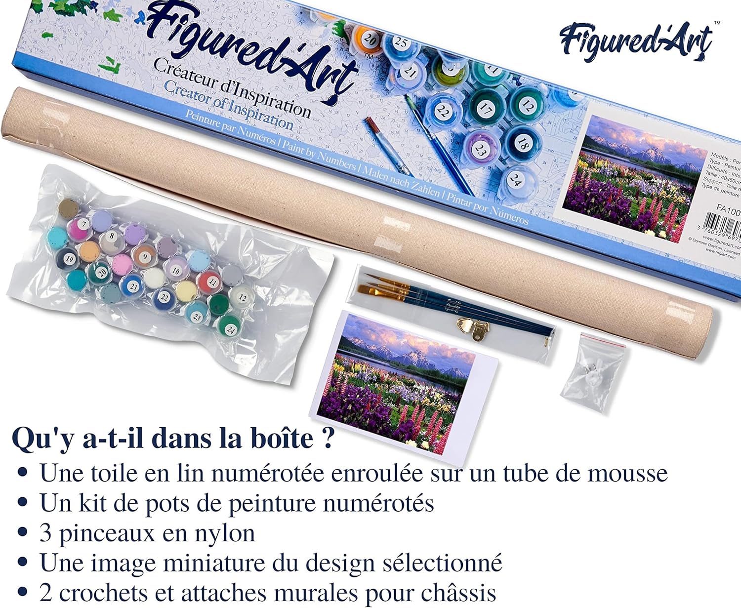 Figured'Art Malen Nach Zahlen Erwachsene Blumen und See am Fusse des Berges - Paint by Numbers Baste