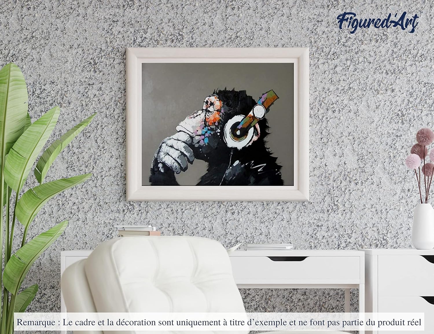 Figured'Art Malen Nach Zahlen Erwachsene Mit Rahmen Affe mit Kopfhörer - Paint by Numbers Basteln DI