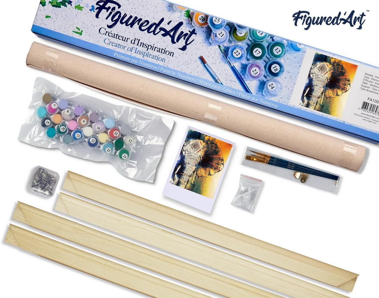 Figured'Art Malen Nach Zahlen Erwachsene Mit Rahmen Asiatischer Elefant - Paint by Numbers Basteln D