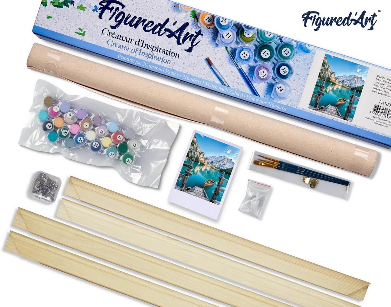 Figured'Art Malen Nach Zahlen Erwachsene Mit Rahmen Boot auf einem Bergsee - Paint by Numbers Bastel