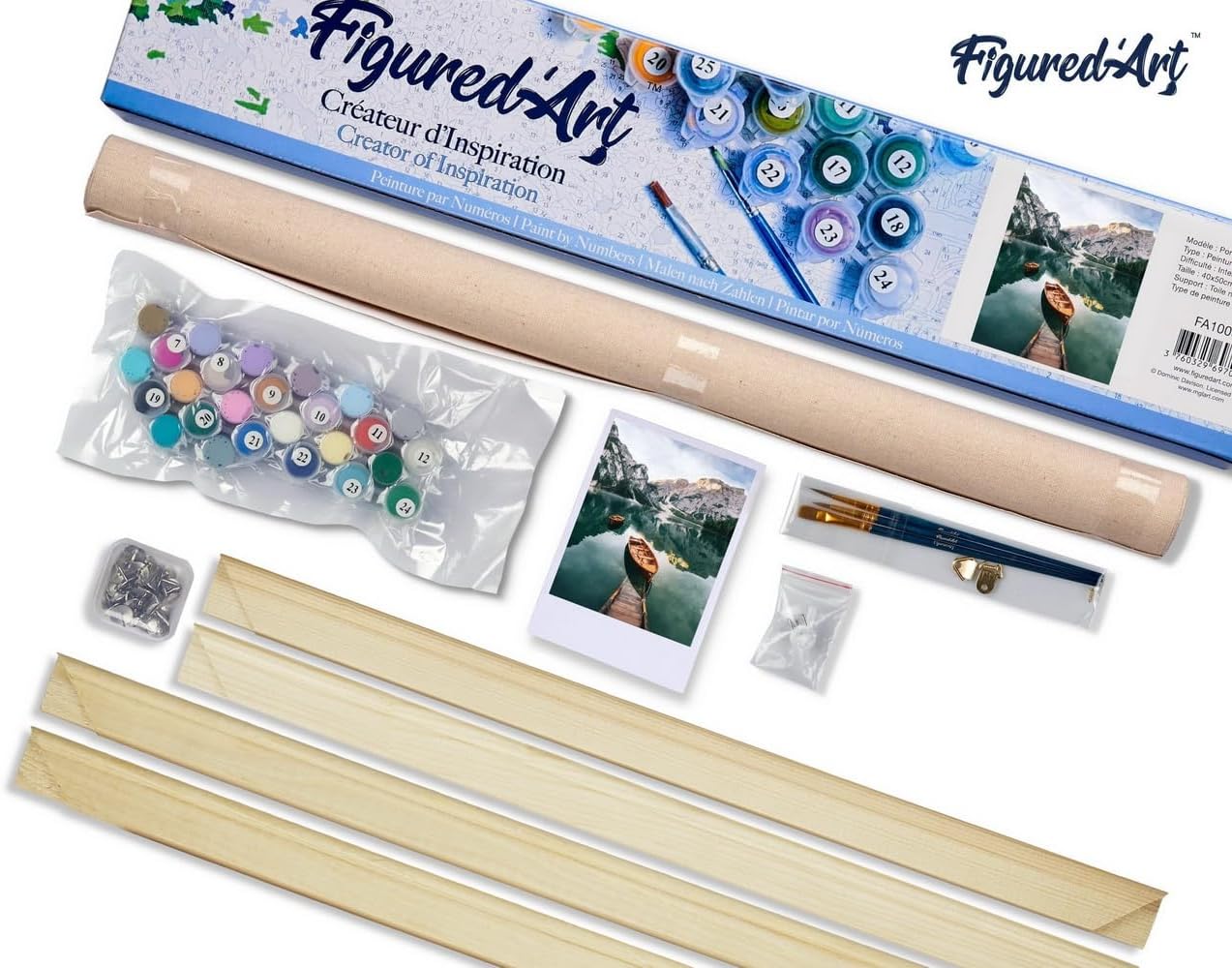 Figured'Art Malen Nach Zahlen Erwachsene Mit Rahmen Boot und Gebirgssee - Paint by Numbers Basteln D