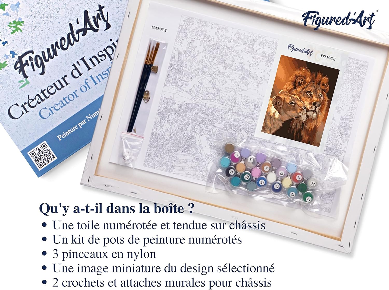 Figured'Art Malen Nach Zahlen Erwachsene Mit Rahmen Löwe und Löwin Paar - Paint by Numbers Basteln D