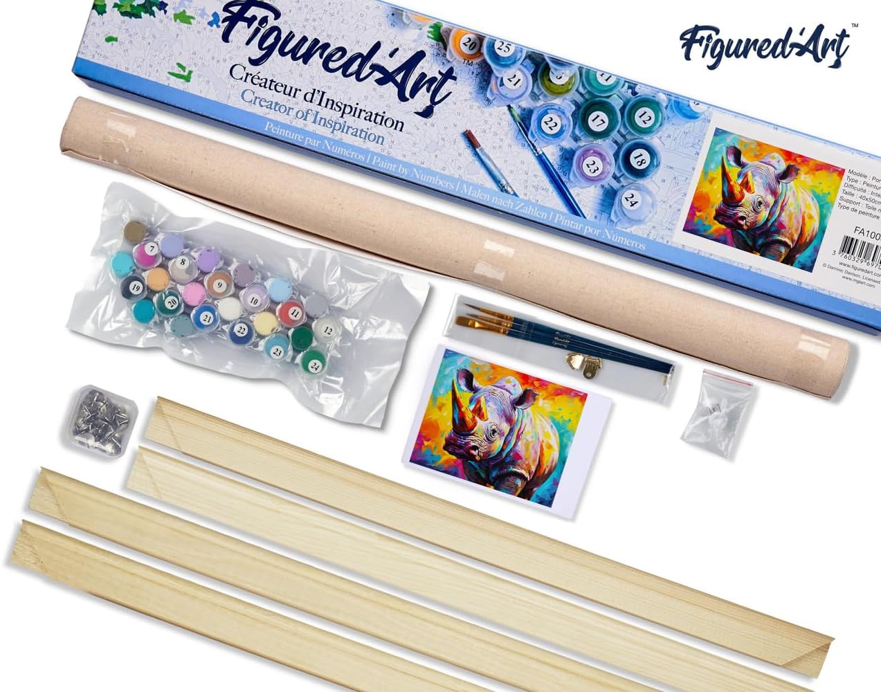 Figured'Art Malen Nach Zahlen Erwachsene Mit Rahmen Nashorn Farbenfroh Abstrakt - Paint by Numbers B
