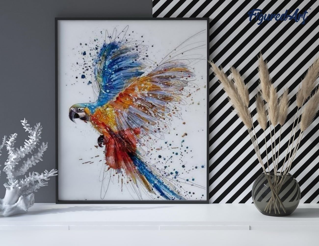 Figured'Art Malen Nach Zahlen Erwachsene Mit Rahmen Papagei in vollem Flug - Paint by Numbers Bastel