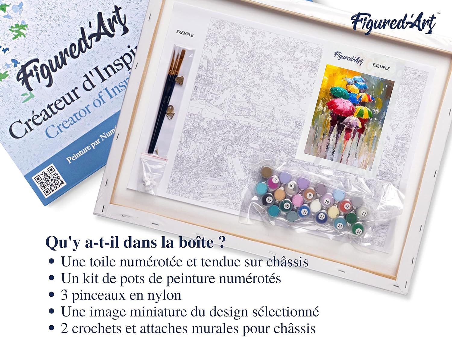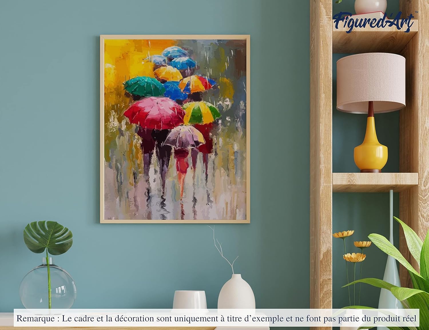 Figured'Art Malen Nach Zahlen Erwachsene Mit Rahmen Schirme im Regen - Paint by Numbers Basteln DIY