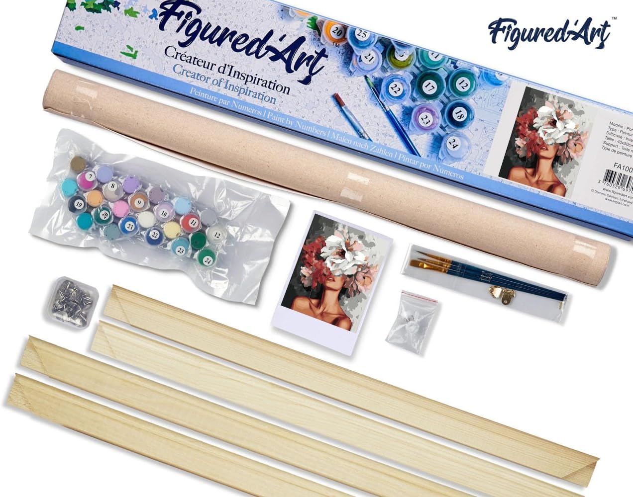 Figured'Art Malen Nach Zahlen Erwachsene Mit Rahmen Schönheit hinter Blumen - Paint by Numbers Baste