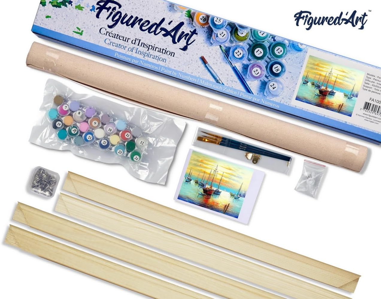 Figured'Art Malen Nach Zahlen Erwachsene Mit Rahmen Segelboote an der Küste - Paint by Numbers Baste