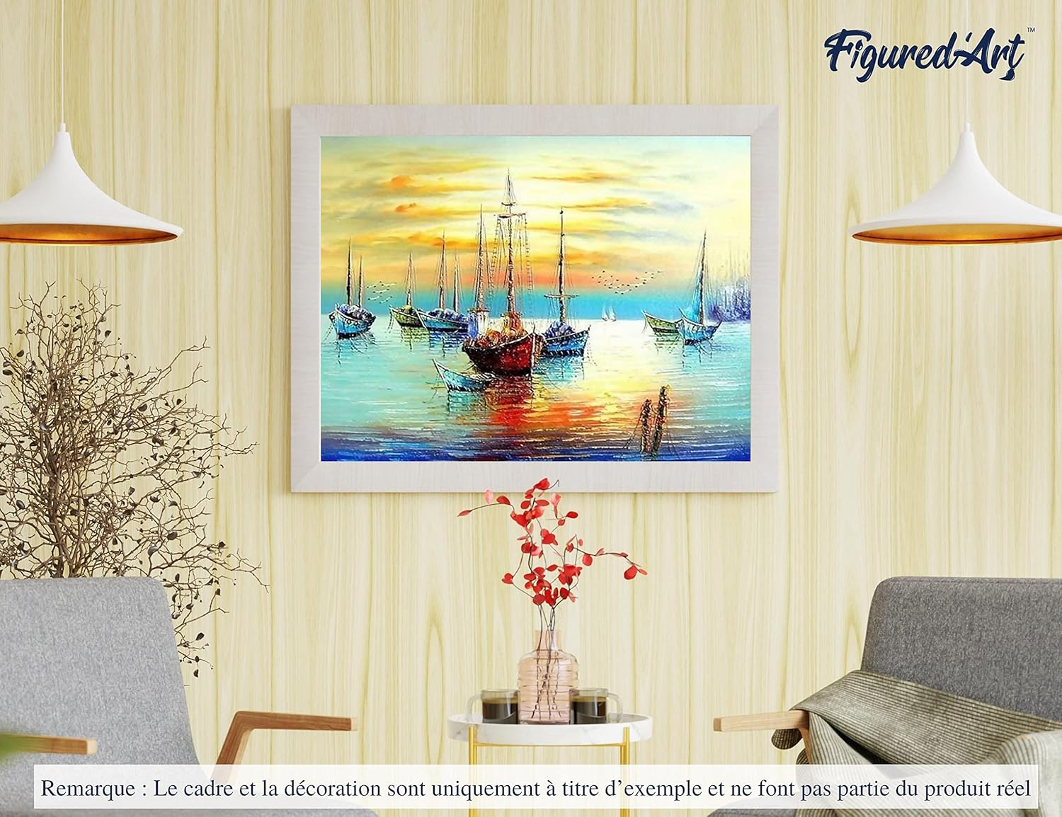 Figured'Art Malen Nach Zahlen Erwachsene Mit Rahmen Segelboote an der Küste - Paint by Numbers Baste