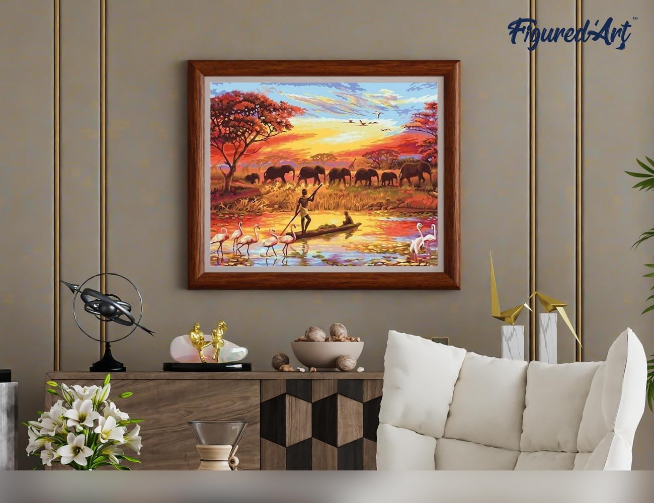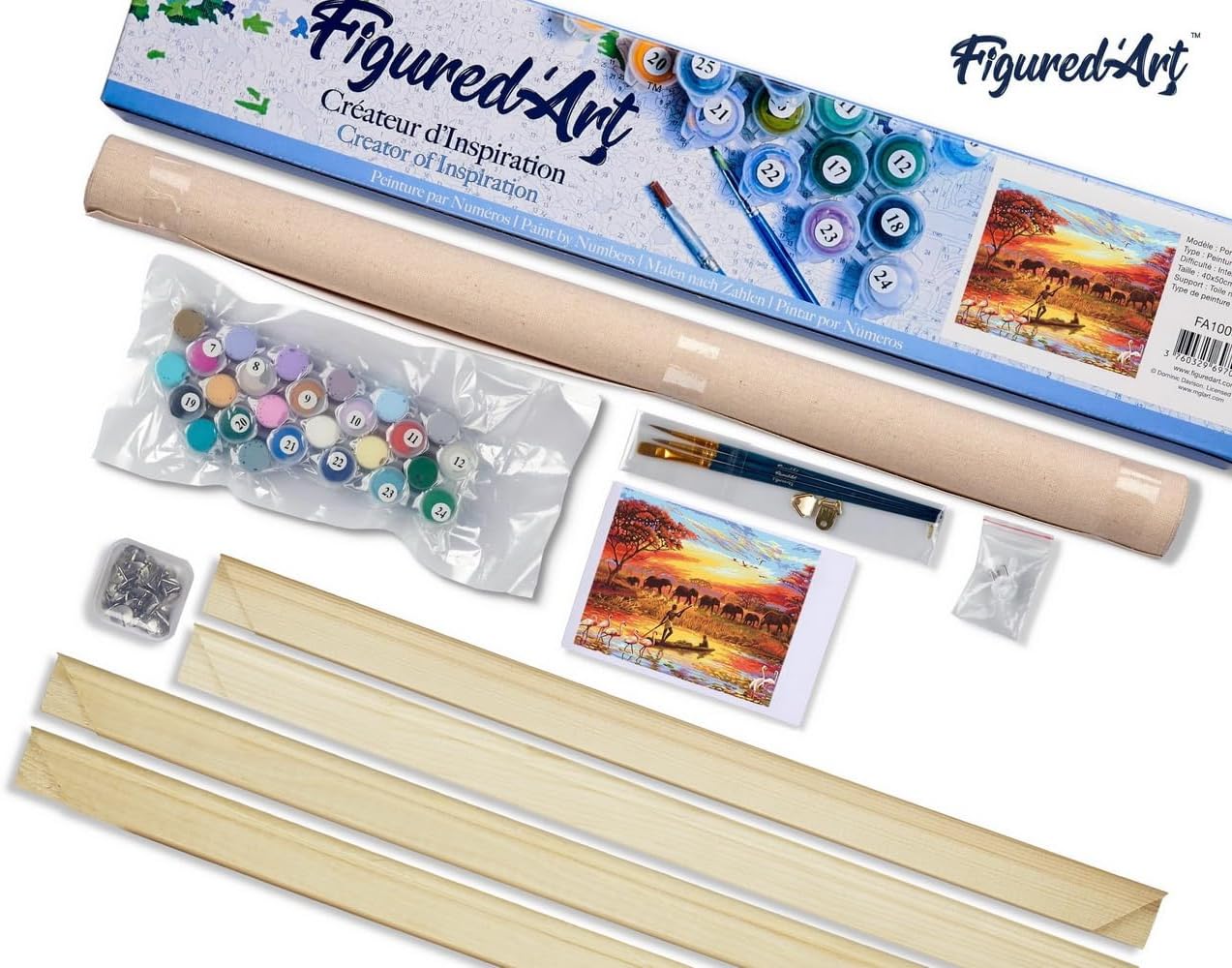 Figured'Art Malen Nach Zahlen Erwachsene Mit Rahmen Sonnenuntergang Elefanten - Paint by Numbers Bas