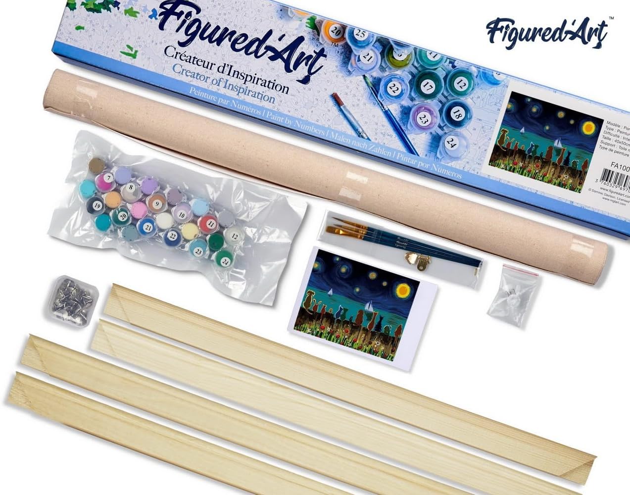 Figured'Art Malen Nach Zahlen Erwachsene Mit Rahmen Sternennacht und Tiere von hinten - Paint by Num