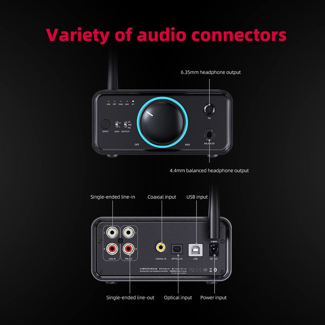 - Bluetooth Empfänger (LDAC, aptX HD, aptX adaptive, aptX, aptX LL, AAC, SBC) / über die FiiO Controll App konfigurierbar