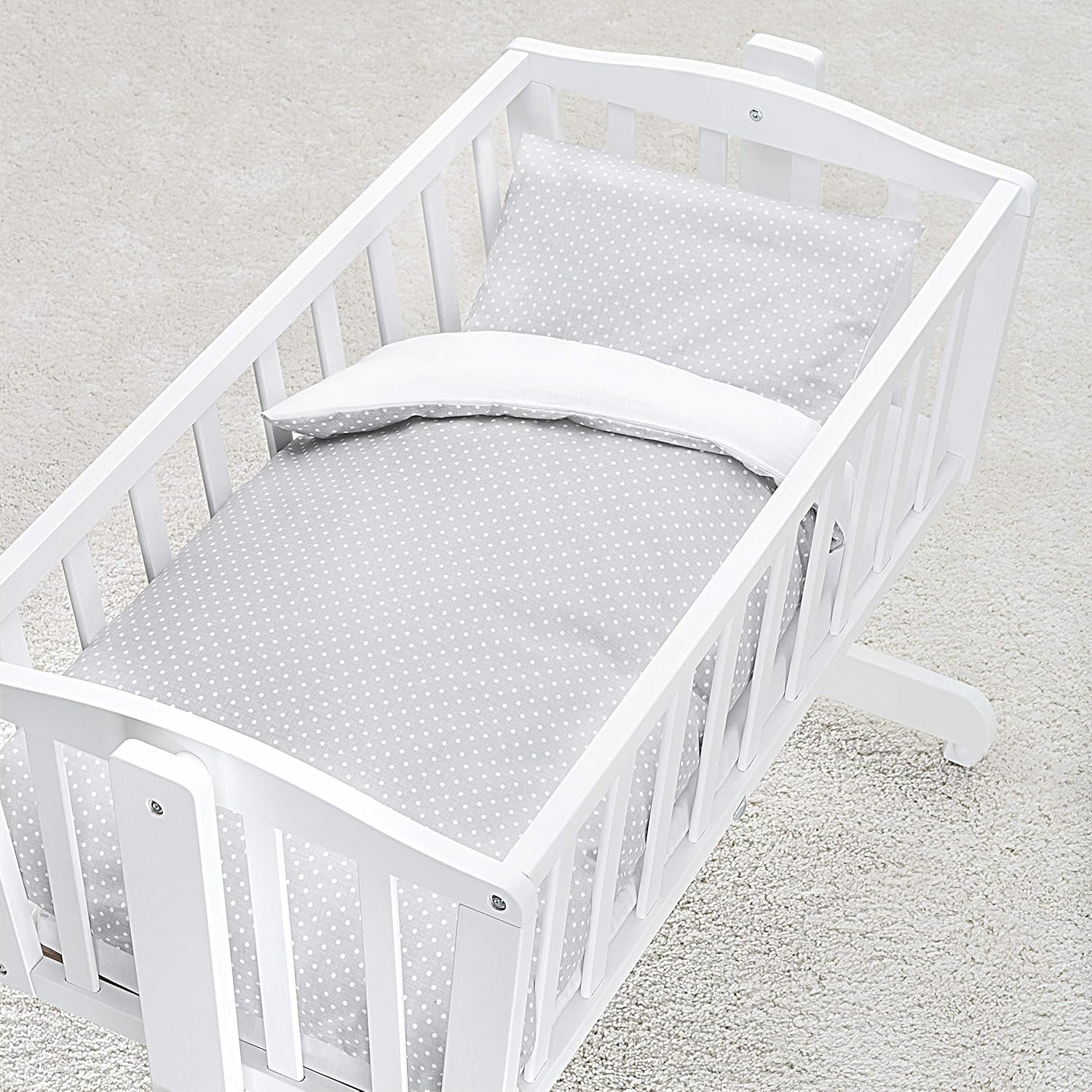 - COOLE WENDEOPTIK: Stilvolles Uni Weiss oder trendige Punkte: Sie haben die Wahl, wie Sie Ihr Neugeborenes einbetten. Super: Beide Seiten passen zu Jungen und Mädchen - Bettset auch als Geschenk zur Geburt geeignet.