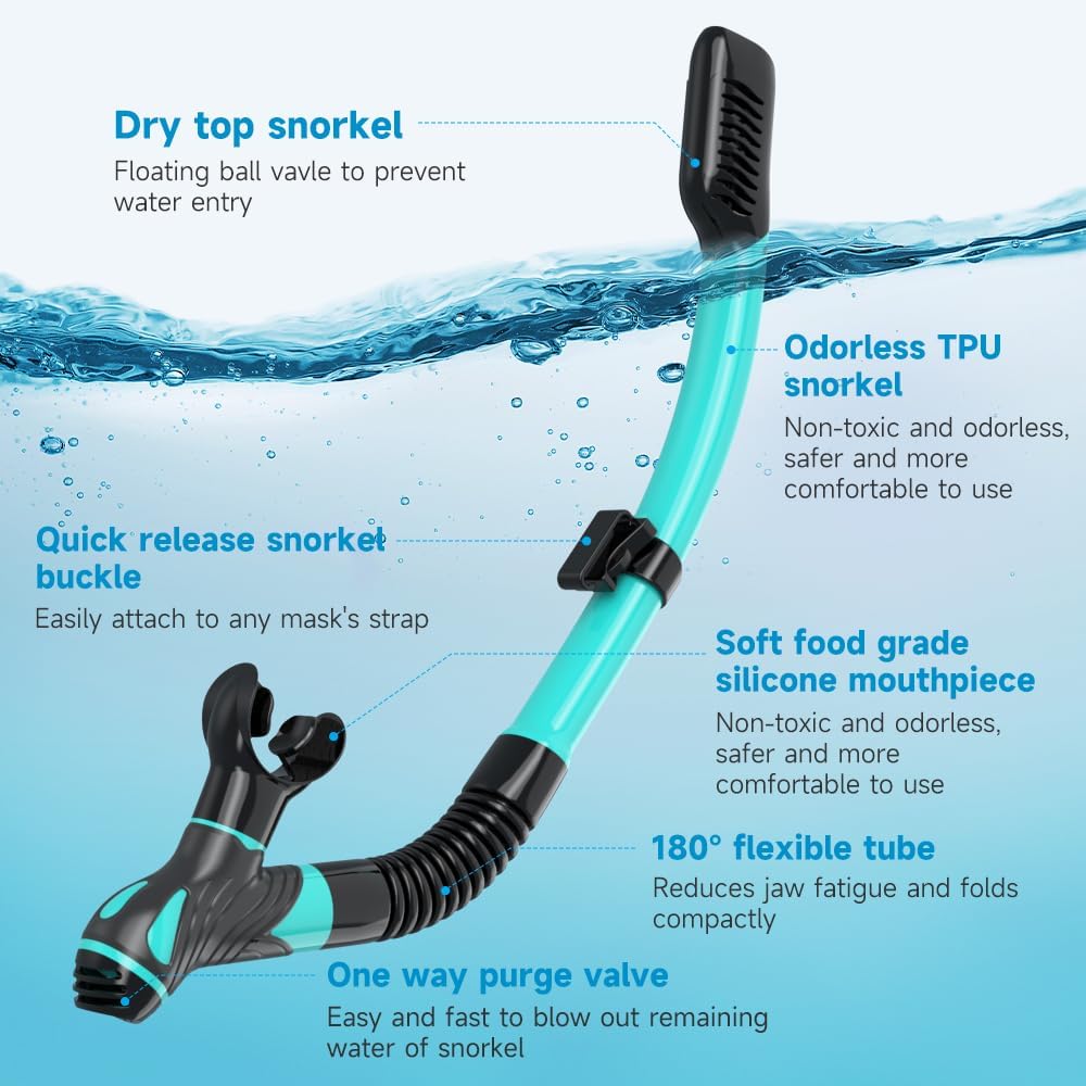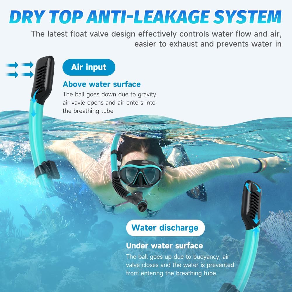 - EINFACH ATMEN & FALTBAR DRY TOP SCHNORCHEL: Unser Schnorchelpaket für Erwachsene ist mit einem voll trockenen Schnorchel ausgestattet, der Luft beim Auftauchen einlässt und automatisch blockiert, um zu verhindern, dass Wasser in den Schnorchel