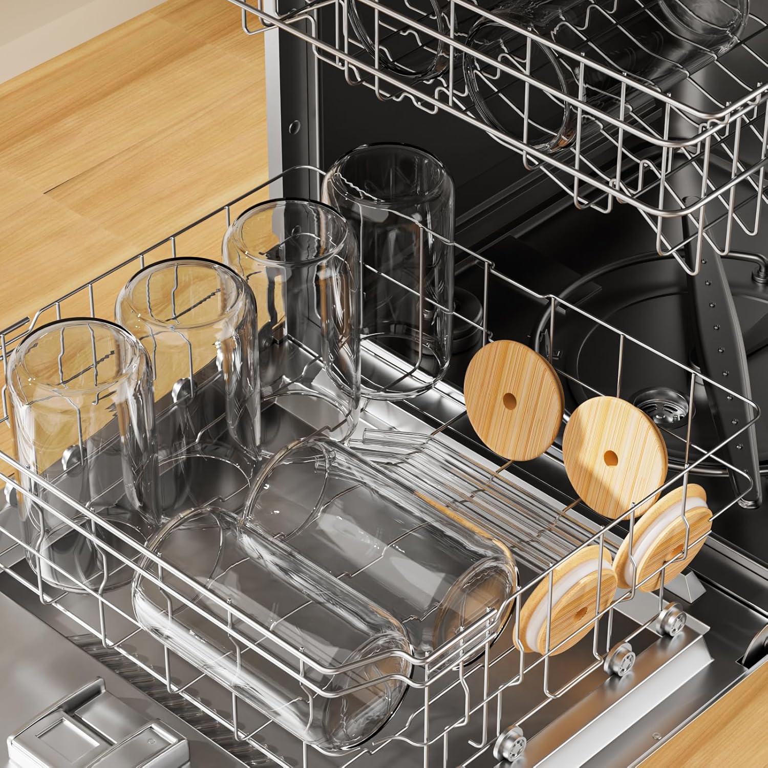 FINEW [8er Set] Trinkbecher Mit Deckel und Strohhalm Glas, 8er Cocktailgläser Set, 16oz/450ml Eiskaf