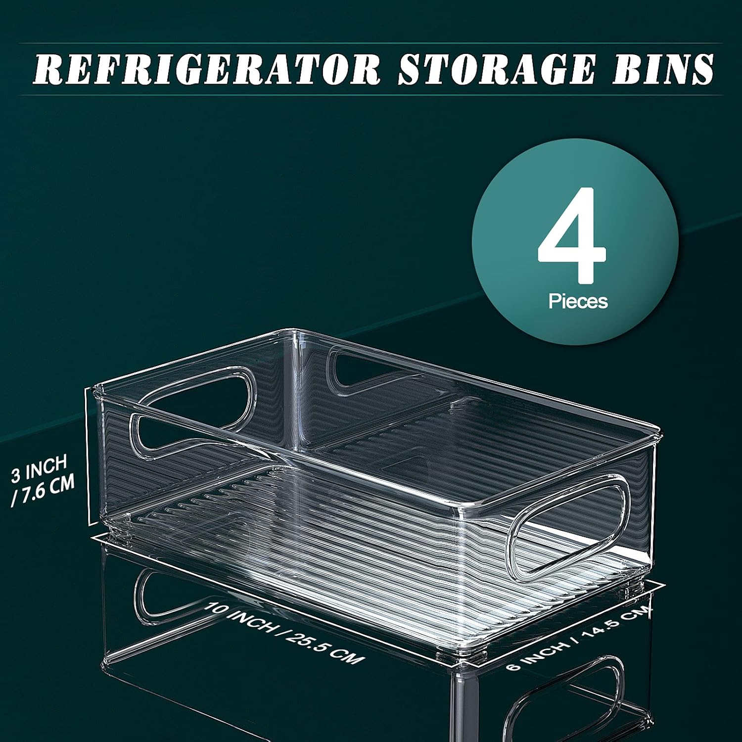 FINEW Kühlschrank Organizer 4er Set, Grosse Speisekammer Vorratsschrank mit Griff, Durchsichtig Boxe