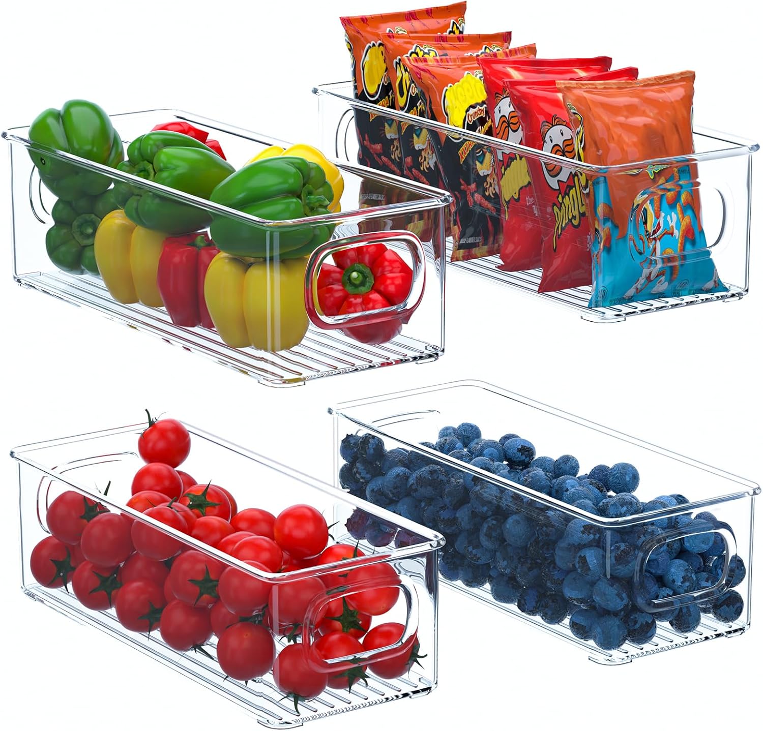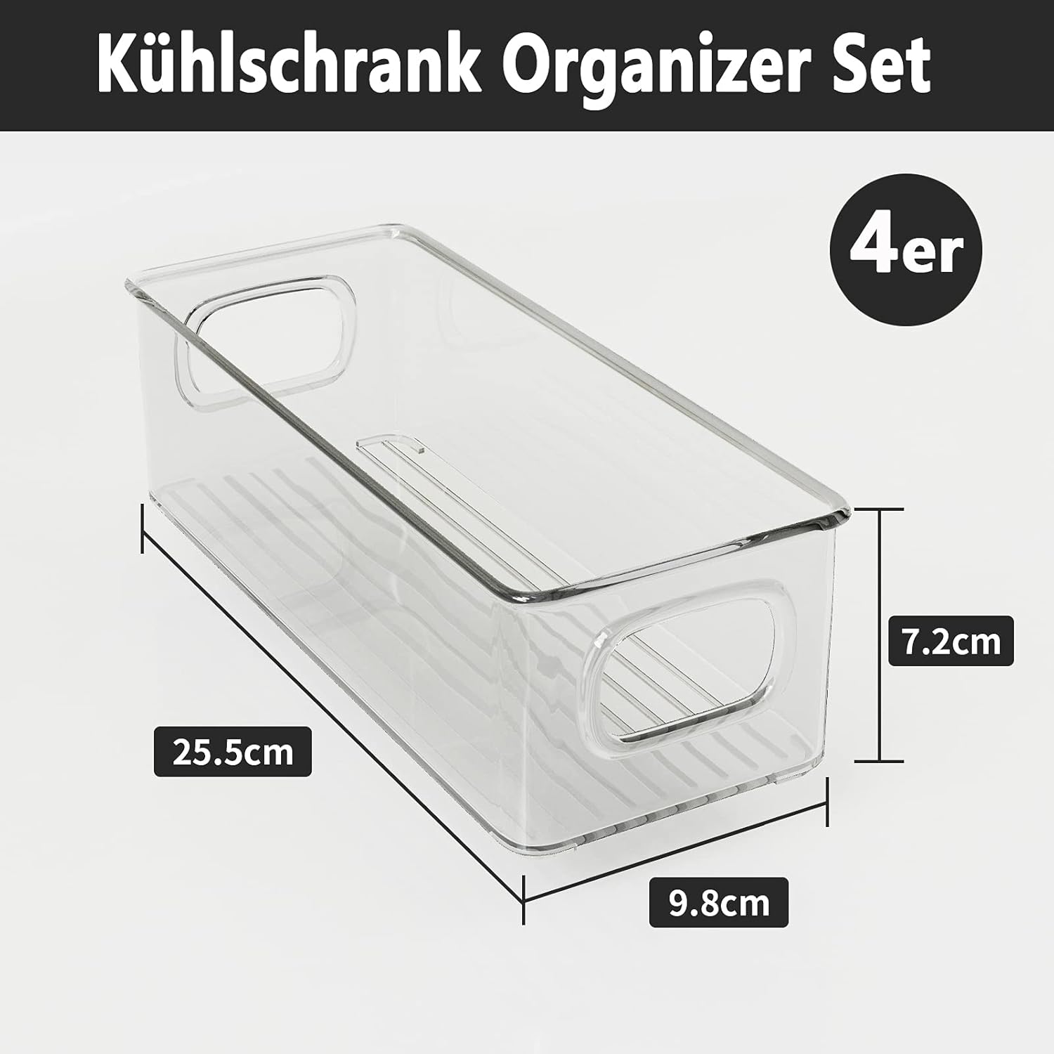 - 4ER SET KÜHLSCHRANK ORGANIZER - Dieses Kühlschrankbox Set enthält 4 kleine Behälters mit eingebauten Griffen. Die Grösse jedes Kühlschrank-Behälters ist 25,5 cm (L) x 9,8 cm (B) x 7,2 cm (H).