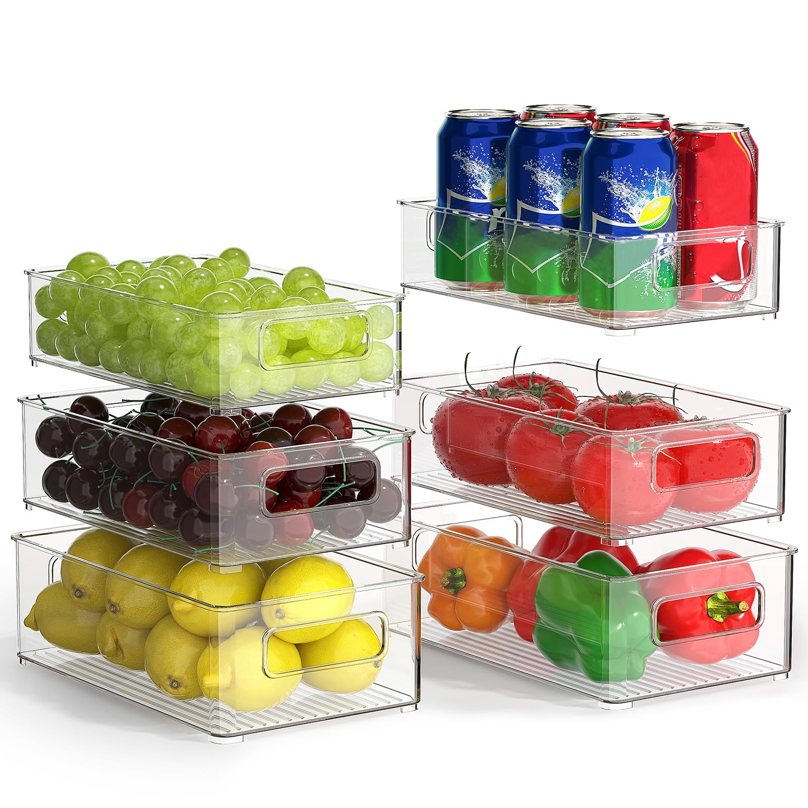 - Stapelbar und eingebettetes Design: Der humanisierte Griff ermöglicht es Ihnen, den Aufbewahrungsbehälter leicht herauszuziehen und zu entnehmen, was Sie brauchen. Die Kühlschrank-Organizer der gleichen Grösse lassen sich leicht übereinander stapeln. Sie können sie auch in grösseren Boxen unterbringen, um bei Nichtgebrauch noch mehr Platz zu sparen.
