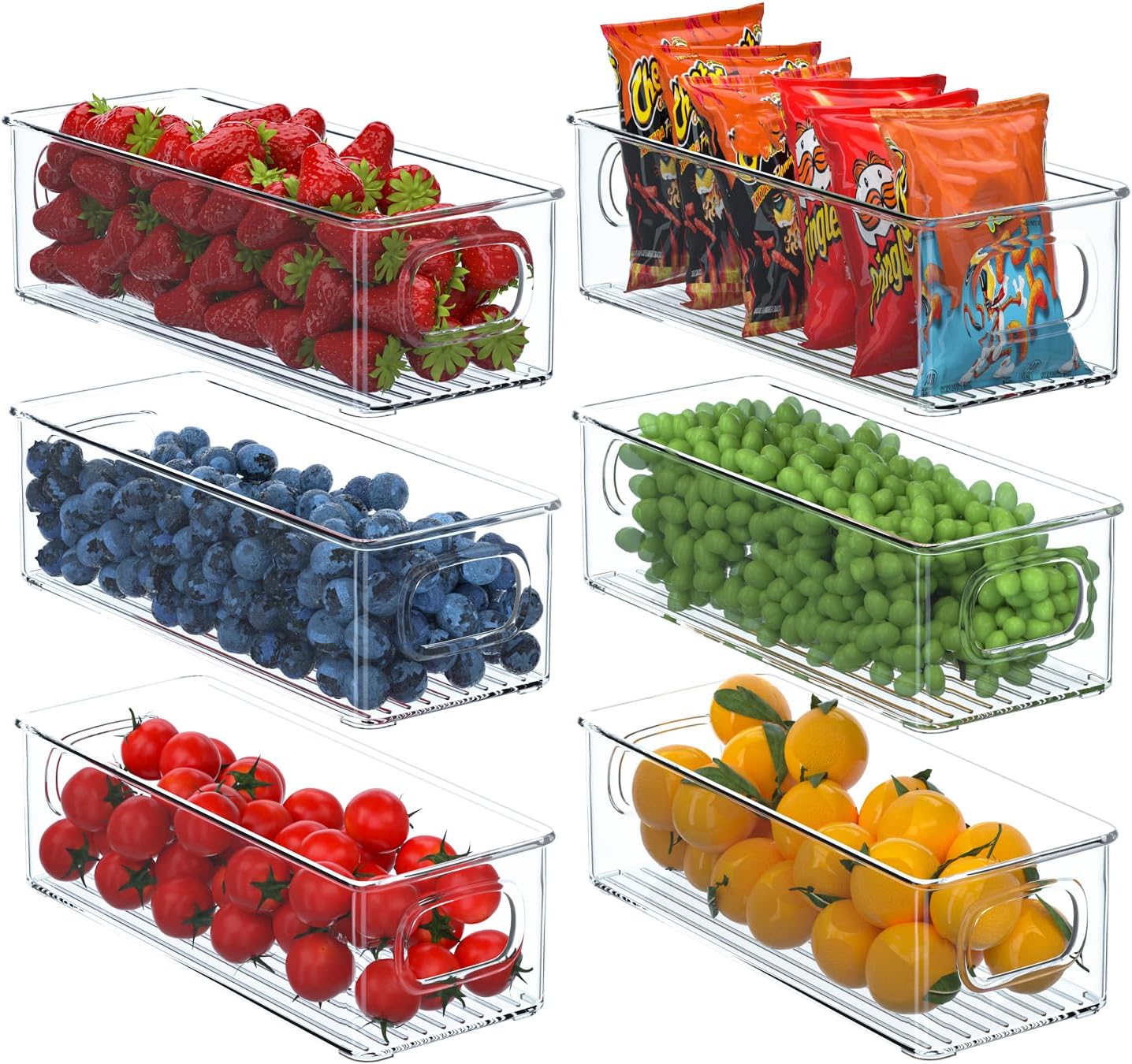 FINEW Kühlschrank Organizer 6er Set, Stapelbar Küchen Aufbewahrungsbox, Kühlschrankbox mit Griff, du