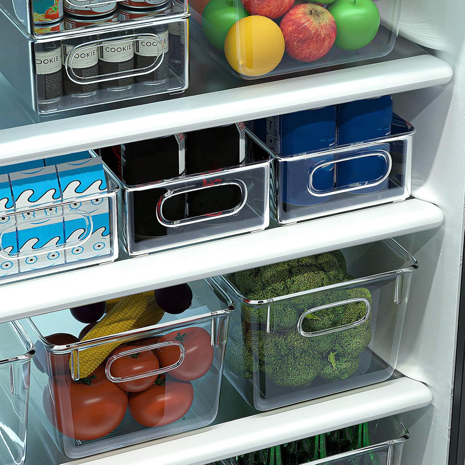 - MULTIFUNKTIONALE AUFBEWAHRUNGSBOX FÜR KÜHLSCHRÄNKE - Das Lagerregal kann Platz sparen, Lebensmittel frisch halten und Ihre Lebensmittel / Getränke / Kleinteile organisieren.Das fridge organizer werden für Kühl- und Gefrierschränke, Tische, Schreibtische und Schränke verwendet. Sie können je nach Bedarf entscheiden, diese kühlschrank boxen verwendet werden sollen.
