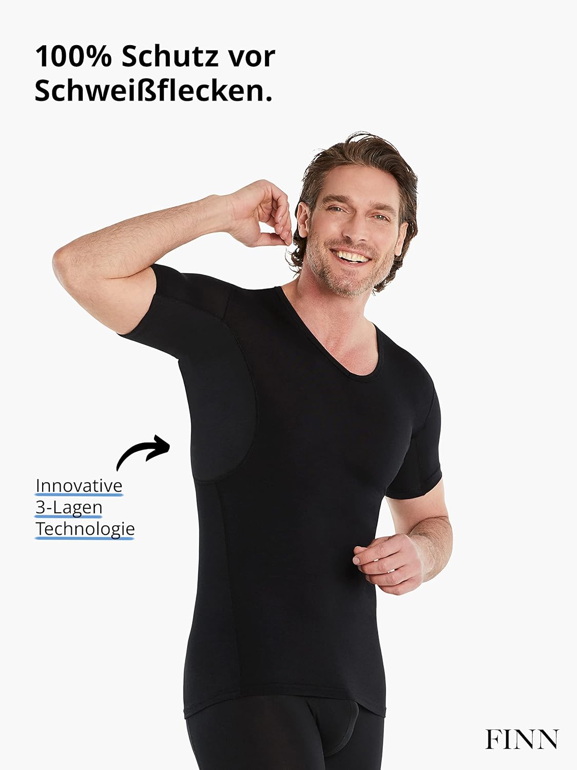 - 100% Schutz vor Achselschweiss: Unsere Antischweissshirts für Männer sind mit der innovativen SweatShield Technology und patentierten Achsel-Pads ausgestattet, um Schweissflecken effektiv zu blockieren.