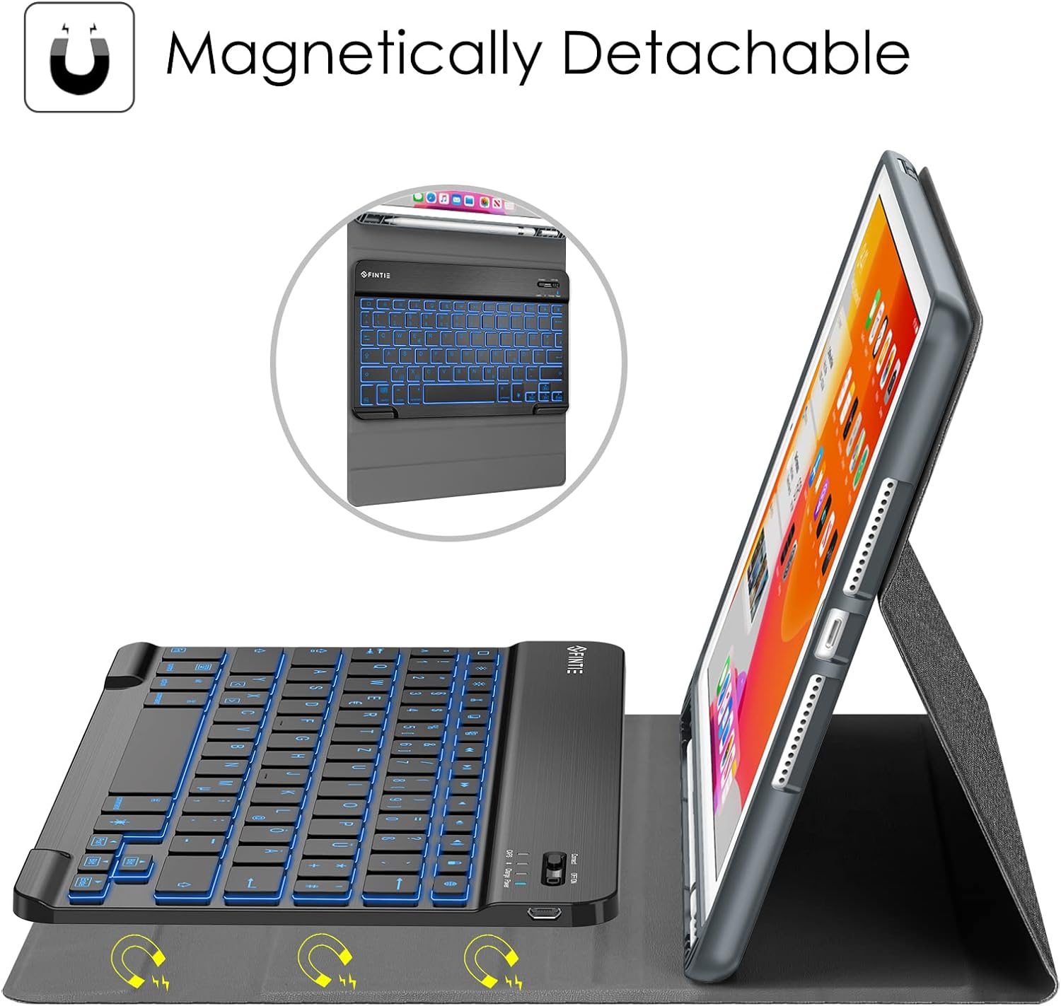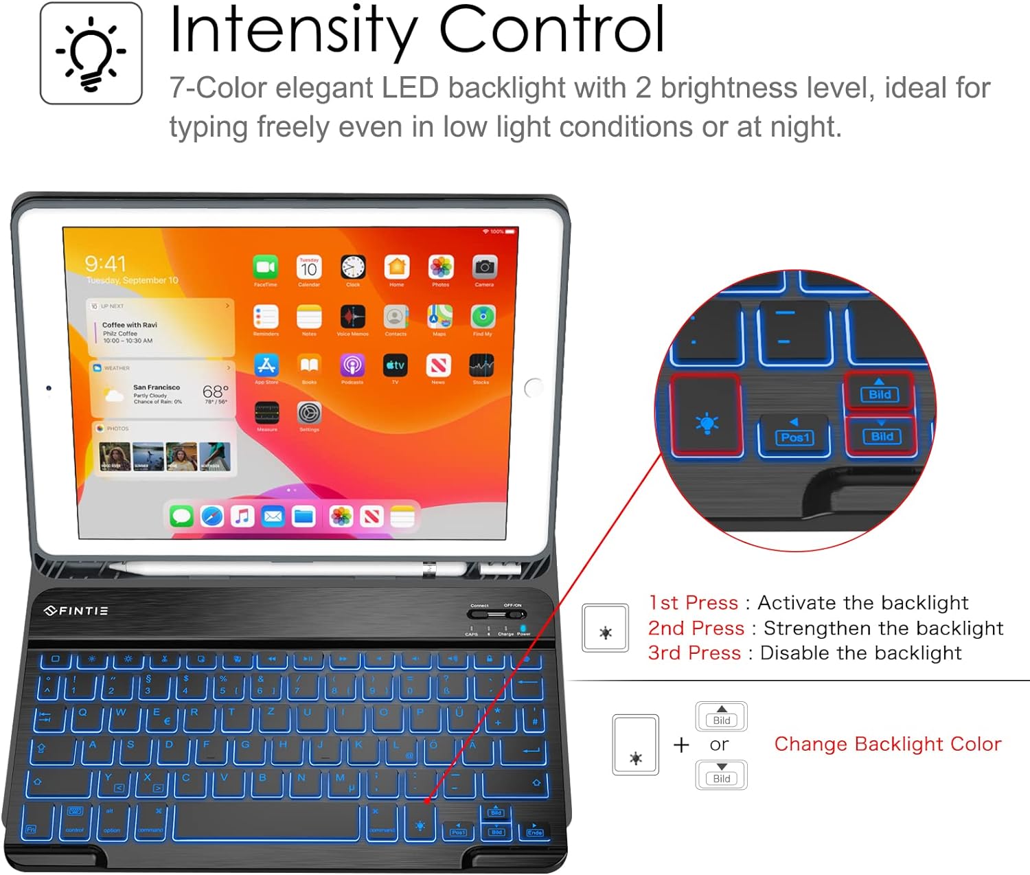 - Exklusiv entworfen für das iPad 9. Generation 2021, iPad 8. Generation 2020, iPad 7. Generation 2019. Nicht kompatibel mit allen anderen iPad Modellen. Wird mit magnetisch abnehmbarer, schmaler (7 mm) und leichter Bluetooth-Tastatur mit 10m Reichweite