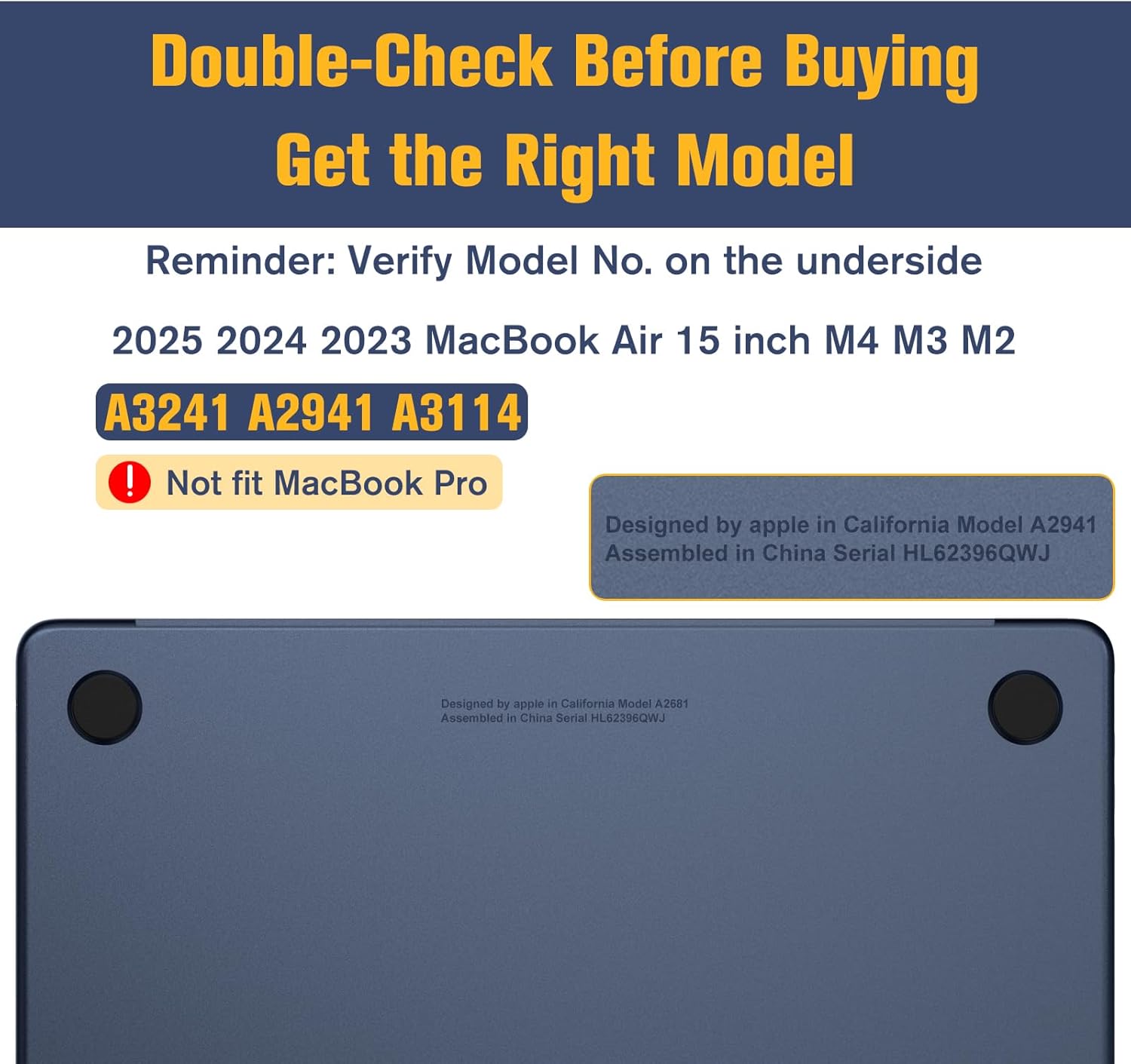 - 【Kompatibilität】Kompatibel mit MacBook Air M3/M2 15" (2024-2023) A3114 A2941. Nicht kompatibel mit anderen Modellen. Bitte überprüfen Sie die Modellnummer auf der Rückseite des laptop vor dem Kauf.