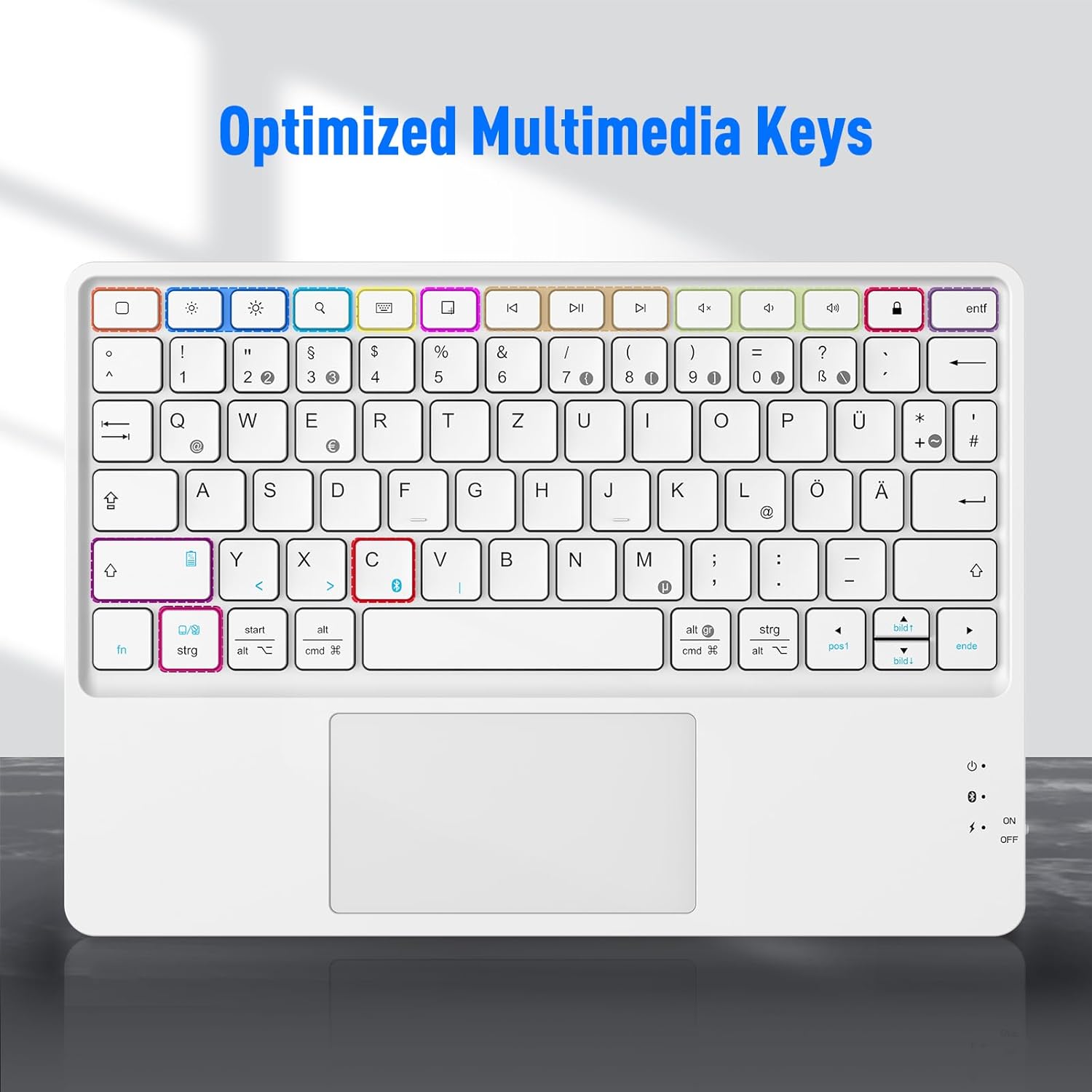 - 【Praktisches Layout und Scherenschalter】 Angepasste Funktionstasten für Tablets, einschliesslich Home, Suche, Lautstärke, Musiksteuerung usw. Der Scherenschalter bietet gute Belastbarkeit und feinen Komfort, Tasten können mehr als 3 Millionen Mal