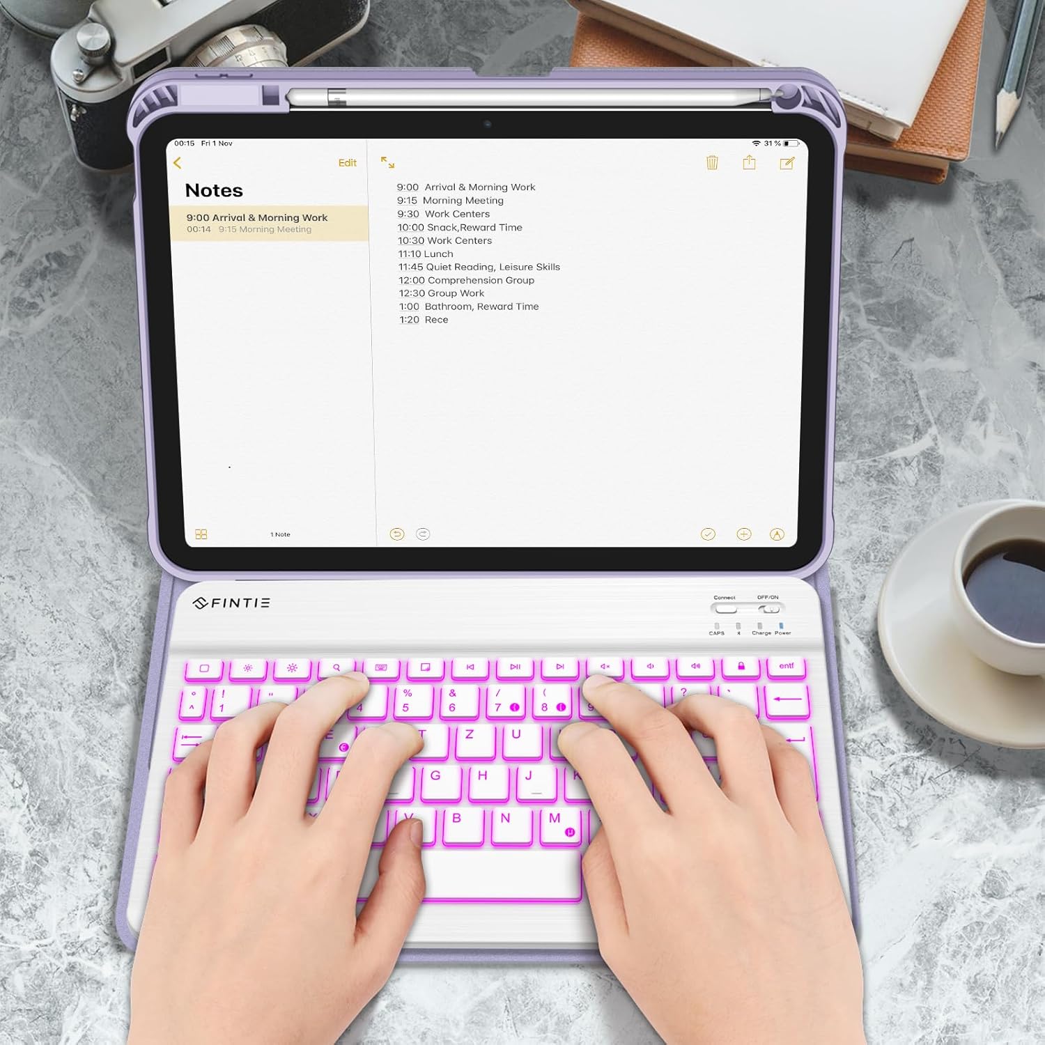 - Durch die eingebaute Apple Stifthalterung und den Kappen- und Adaptersteckplätzen, können Sie den Apple Stift, die Apple Stiftkappe und den Adapter jederzeit rausnehmen. Das strapazierfähige Kunstleder und die rutschfeste, gummierte Innenschale bieten