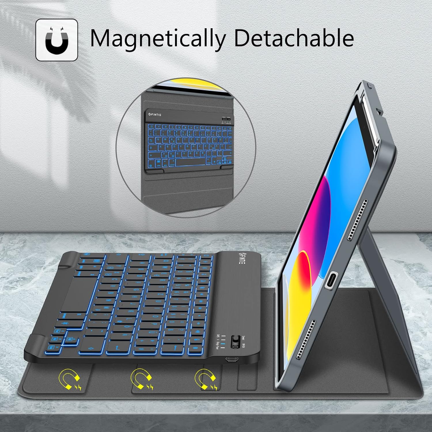 - Exklusiv entworfen für das iPad 10. Generation 2022, iPad 10.9 zoll hülle 2022 (Modellnummer: A2696 / A2757 / A2777) -- nicht kompatibel mit allen anderen iPad Modellen. Wird mit magnetisch abnehmbarer, schmaler (7 mm) und leichter Bluetooth-Tastatur