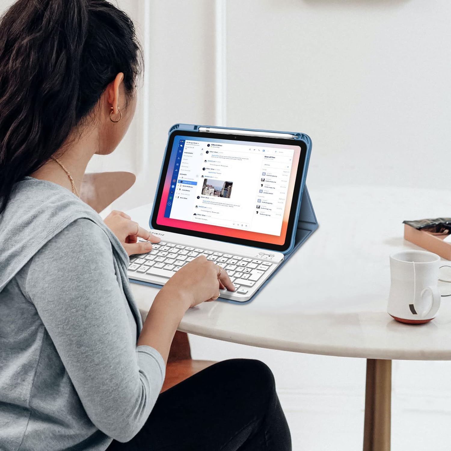 Fintie Tastatur Hülle für iPad 10. Generation 2022 (10.9 Zoll), Schutzhülle mit TPU Rückschale, Penc