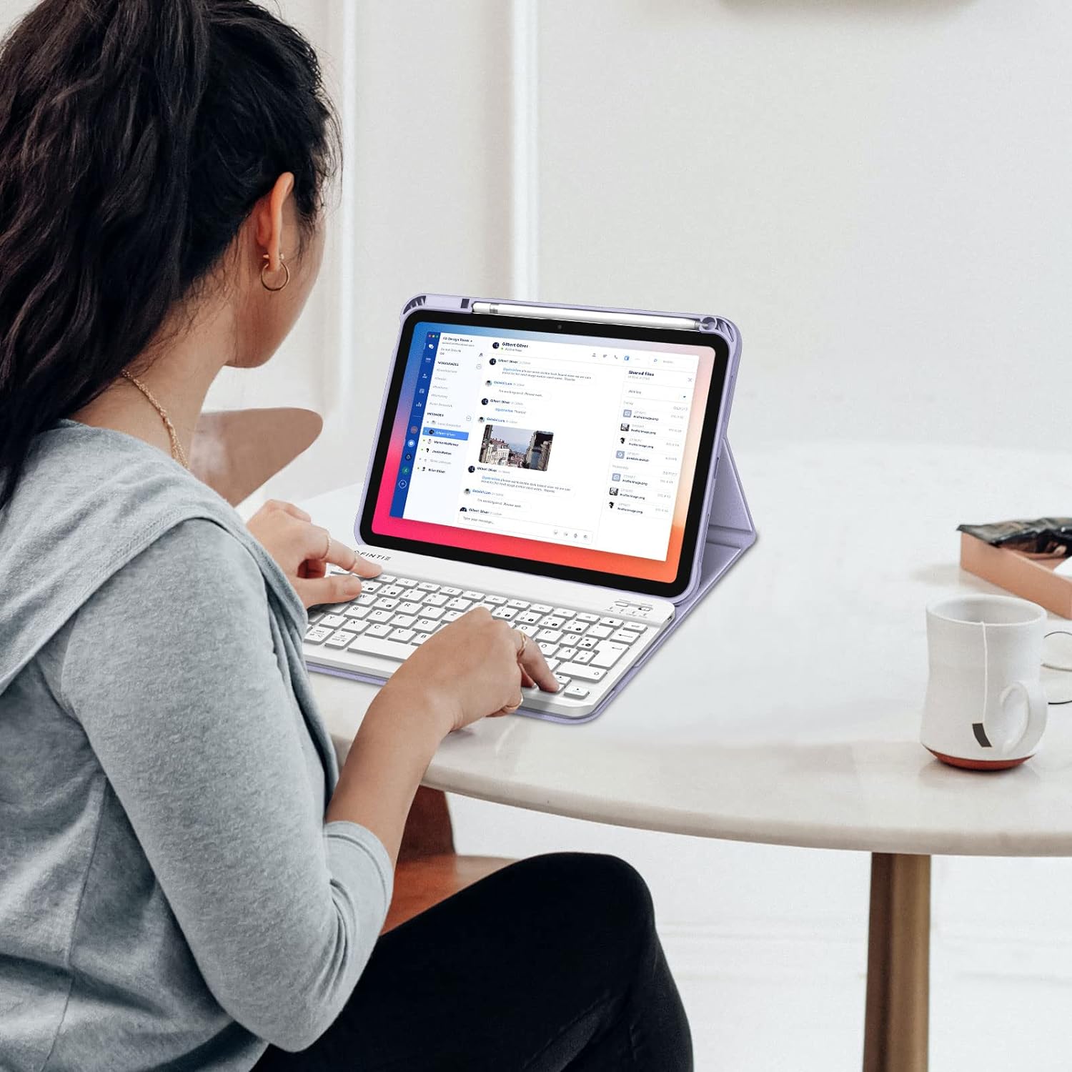- Superschlankes Design bietet umfassenden Schutz und hat nur ein leichtes Gewicht. Der verstellbare Ständer hält Ihr iPad sicher im Querformat. Die Reichweite der Bluetooth Tastatur ist 10 Meter. Sie verbindet problemlos und schnell mit Ihrem ipad 10
