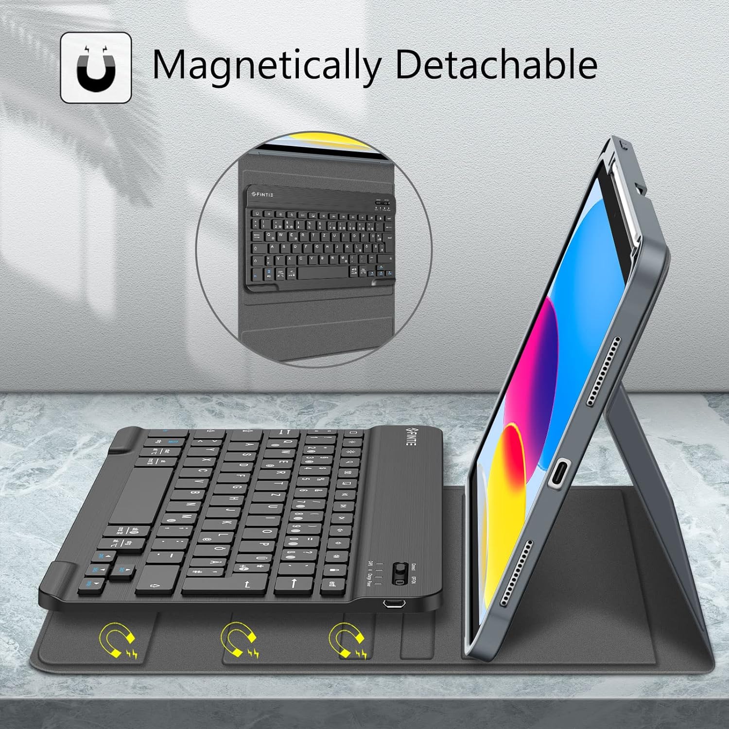 Fintie Tastatur Hülle für iPad 10. Generation 2022 (10.9 Zoll), Schutzhülle mit TPU Rückschale, Penc