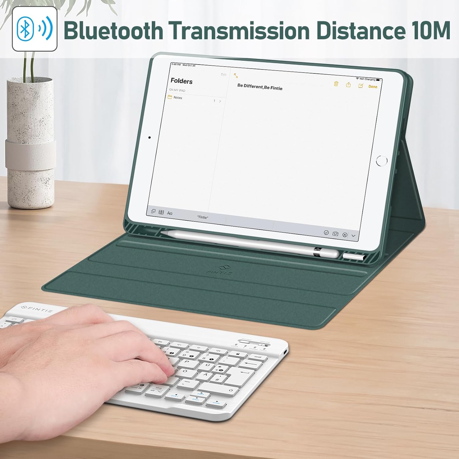 - Superschlankes Design bietet umfassenden Schutz und hat nur ein leichtes Gewicht. Der verstellbare Ständer hält Ihr iPad sicher im Querformat. Die Reichweite der Bluetooth Tastatur ist 10 Meter. Sie verbindet problemlos und schnell mit Ihrem iPad und