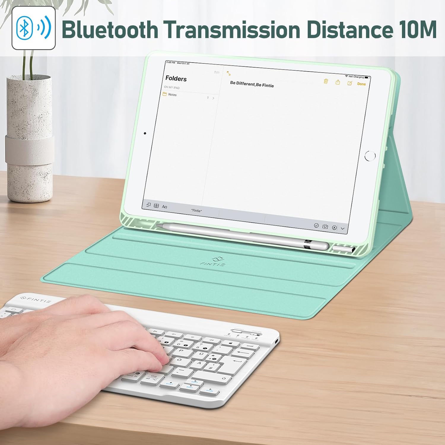 - Superschlankes Design bietet umfassenden Schutz und hat nur ein leichtes Gewicht. Der verstellbare Ständer hält Ihr iPad sicher im Querformat. Die Reichweite der Bluetooth Tastatur ist 10 Meter. Sie verbindet problemlos und schnell mit Ihrem iPad und