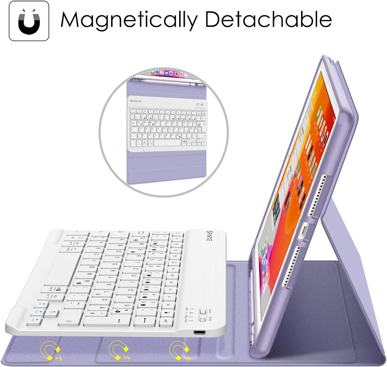 - Fintie Tastatur Hülle für iPad 10.2 Zoll , Schutzhülle mit TPU Rückschale, Pencil Halter und magnetisch Abnehmbarer Tastatur mit QWERTZ Layout, Violett