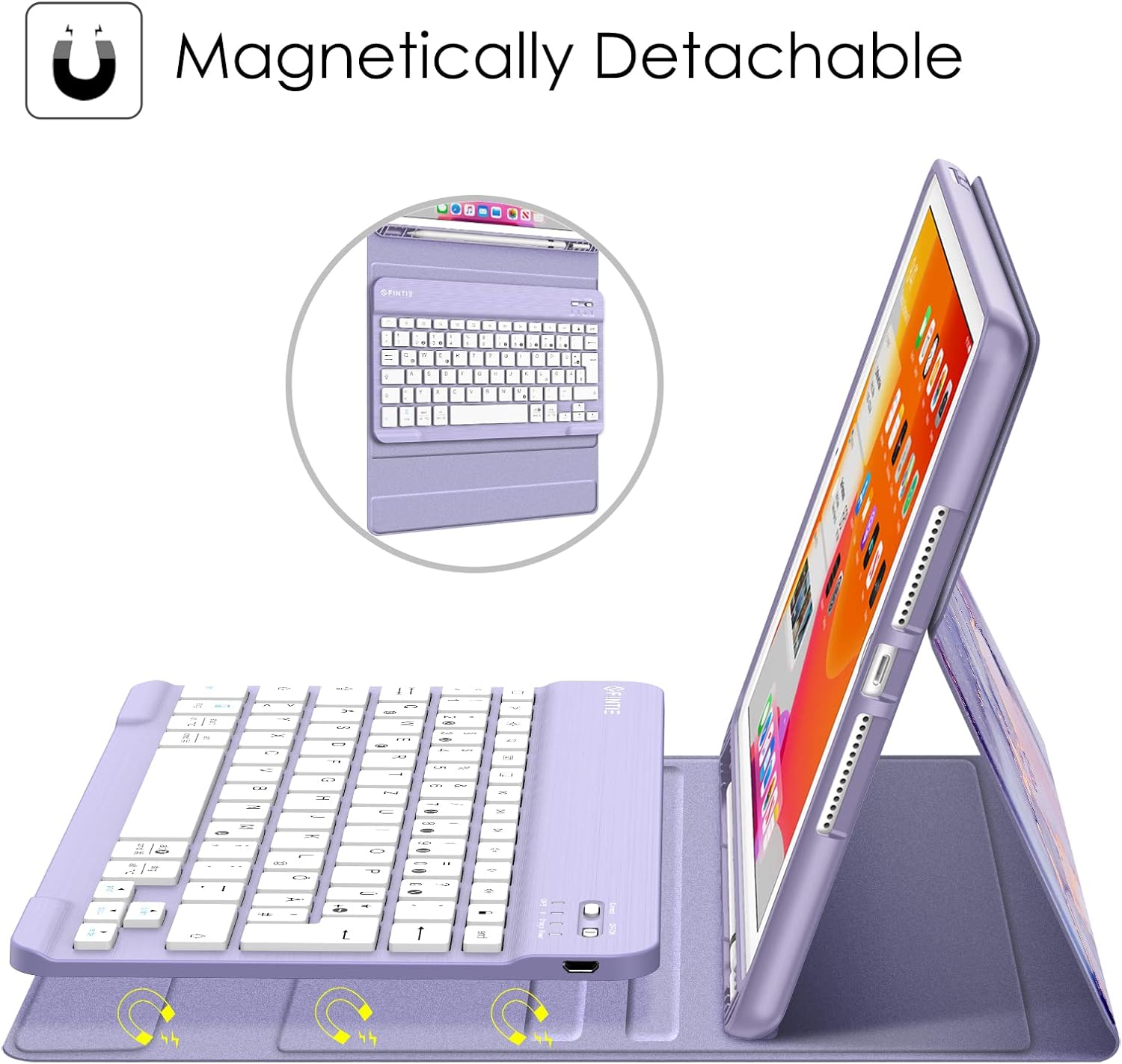 - Superschlankes Design bietet einwandfreien Schutz mit nur geringem Gewicht. Der verstellbare Ständer hält Ihr iPad sicher im Querformat. Die Reichweite der Bluetooth Tastatur ist 10 Meter, verbindet mit Ihrem iPad und anderen iOS Geräten (mit