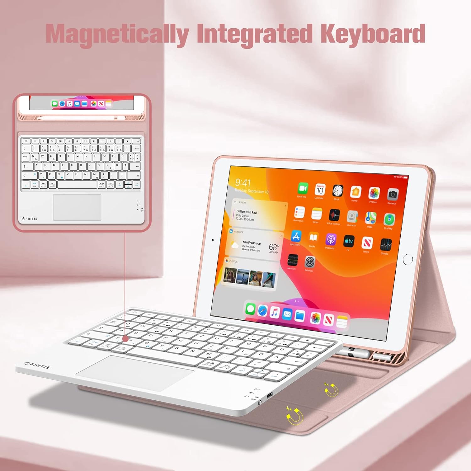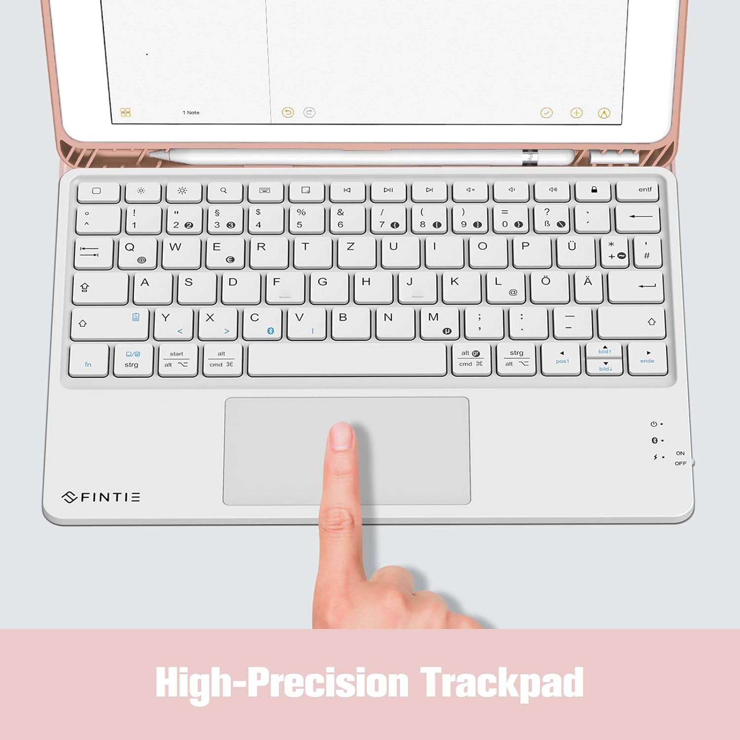 - Tastatur mit Trackpad - Mit dem eingebauten Touchpad können Sie Ihr Tablet durch mehrere Gesten kontrolieren, ohne eine Maus, besser und praktischer zur arbeiten und spielen. Die Reichweite der Bluetooth Tastatur ist 10 Meter, verbindet unbehindert mit