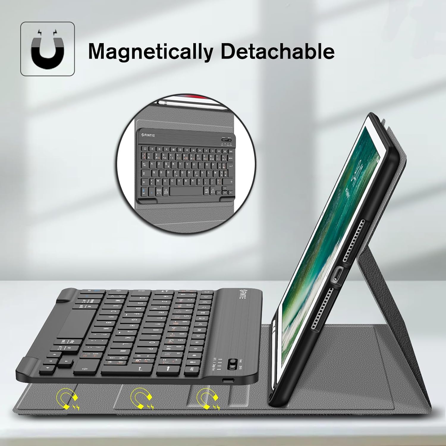 - Das strapazierfähige Kunstleder und die rutschfeste, gummierte Innenschale bieten den besten Schutz. Die weicher TPU Rückenschale, schützt ihr iPad vor Stössen, Stürzen und Schlägen. [Auto Sleep/Wake funktioniert NUR wenn die Tastatur abgenommen