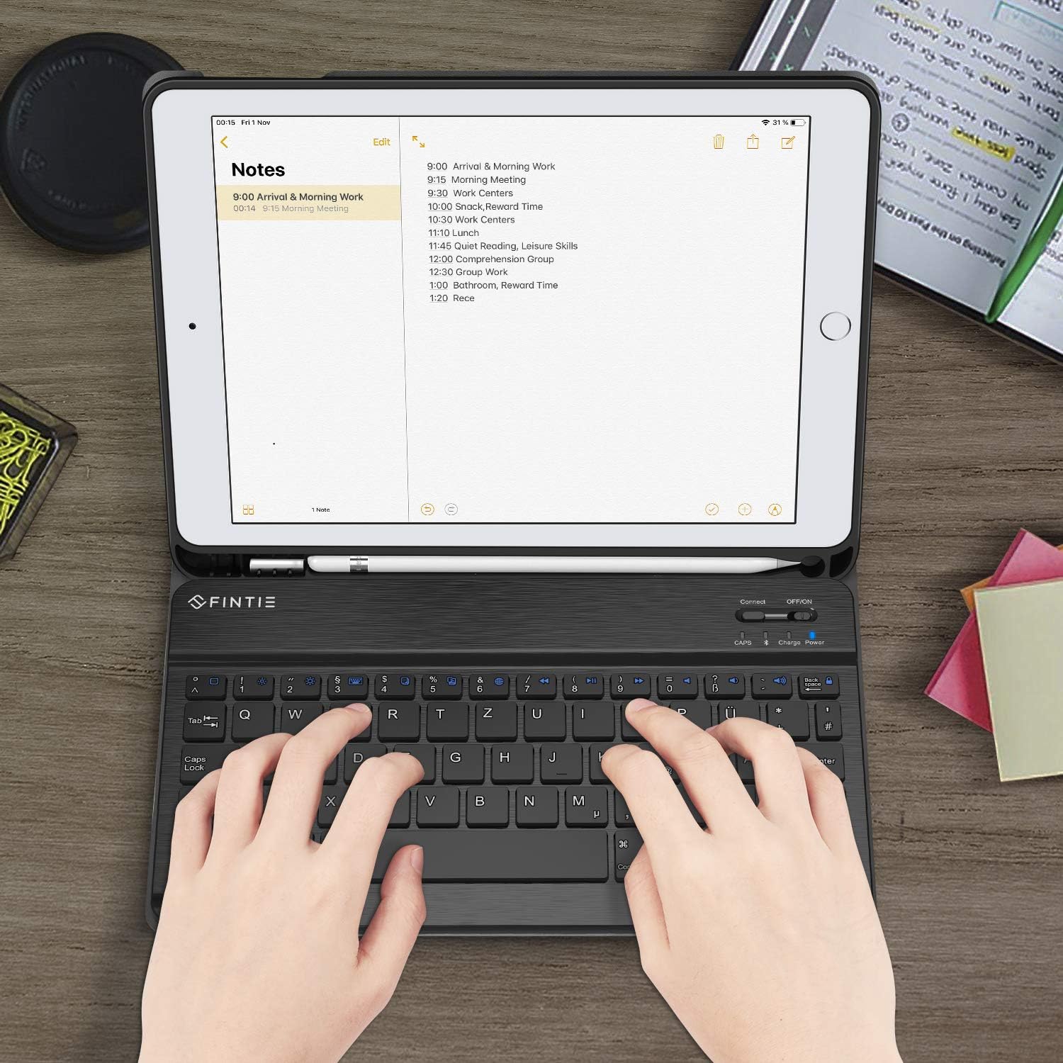 - Superschlankes Design bietet einwandfreien Schutz mit nur geringem Gewicht. Der verstellbare Ständer hält Ihr iPad sicher im Querformat. Die Reichweite der Bluetooth Tastatur ist 10 Meter, verbindet mit Ihrem iPad und anderen iOS Geräten (mit