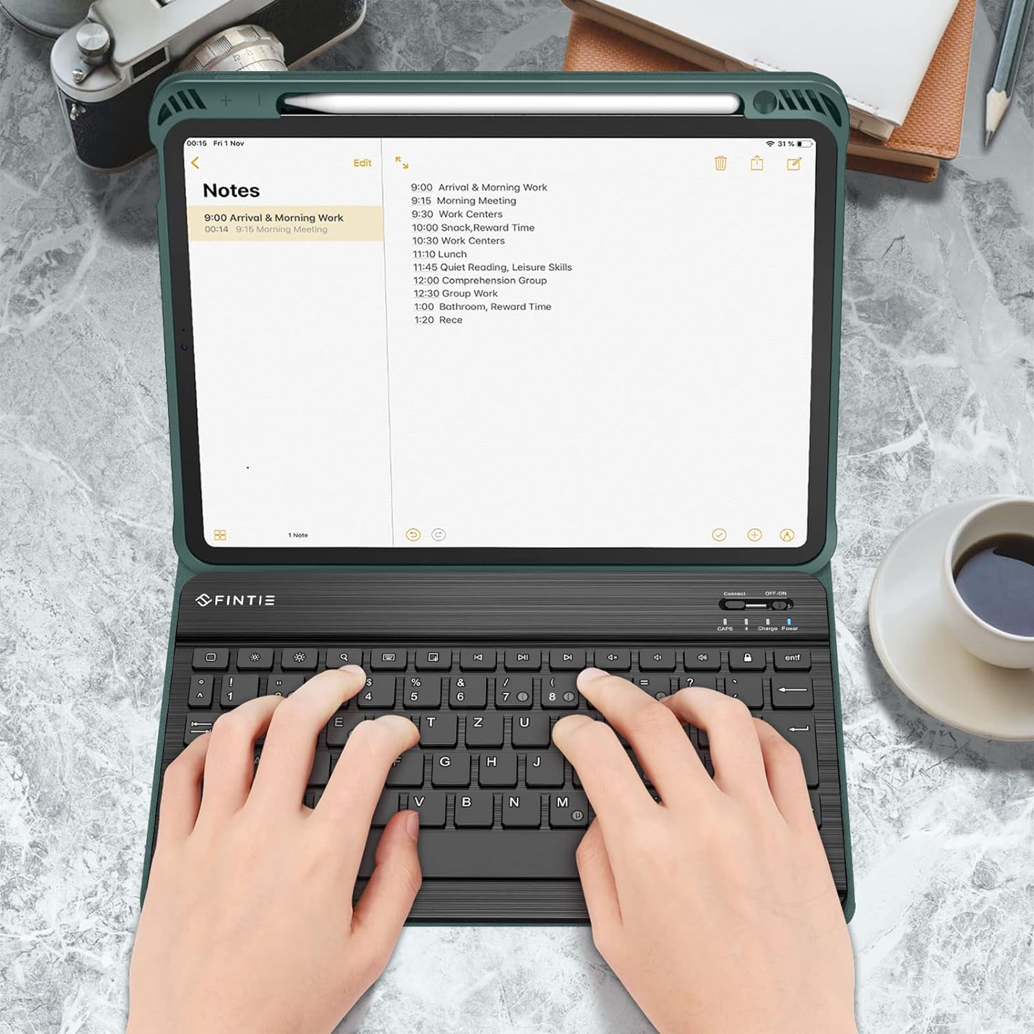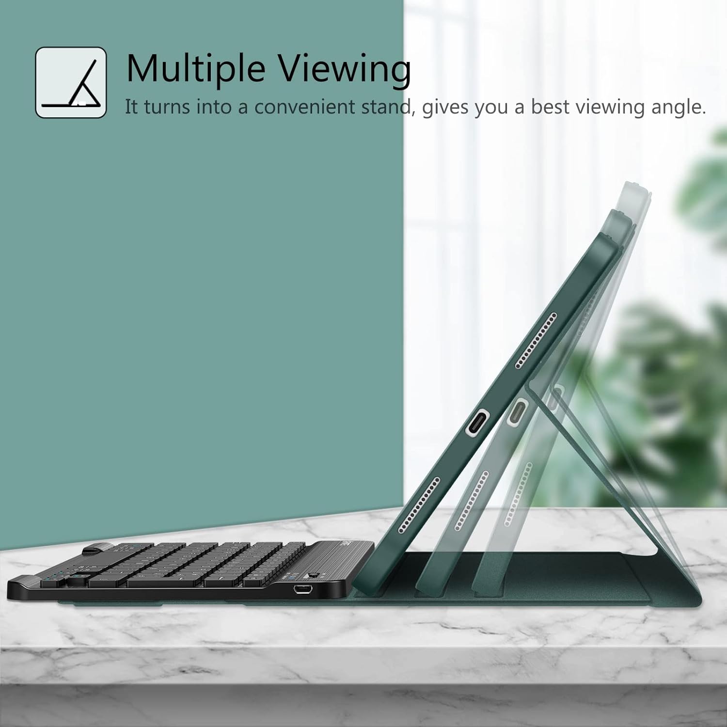 - Superschlankes Design bietet umfassenden Schutz und hat nur ein leichtes Gewicht. Der verstellbare Ständer hält Ihr iPad Air 5 / 4 sicher im Querformat. Die Reichweite der Bluetooth Tastatur ist 10 Meter. Sie verbindet problemlos und schnell mit Ihrem