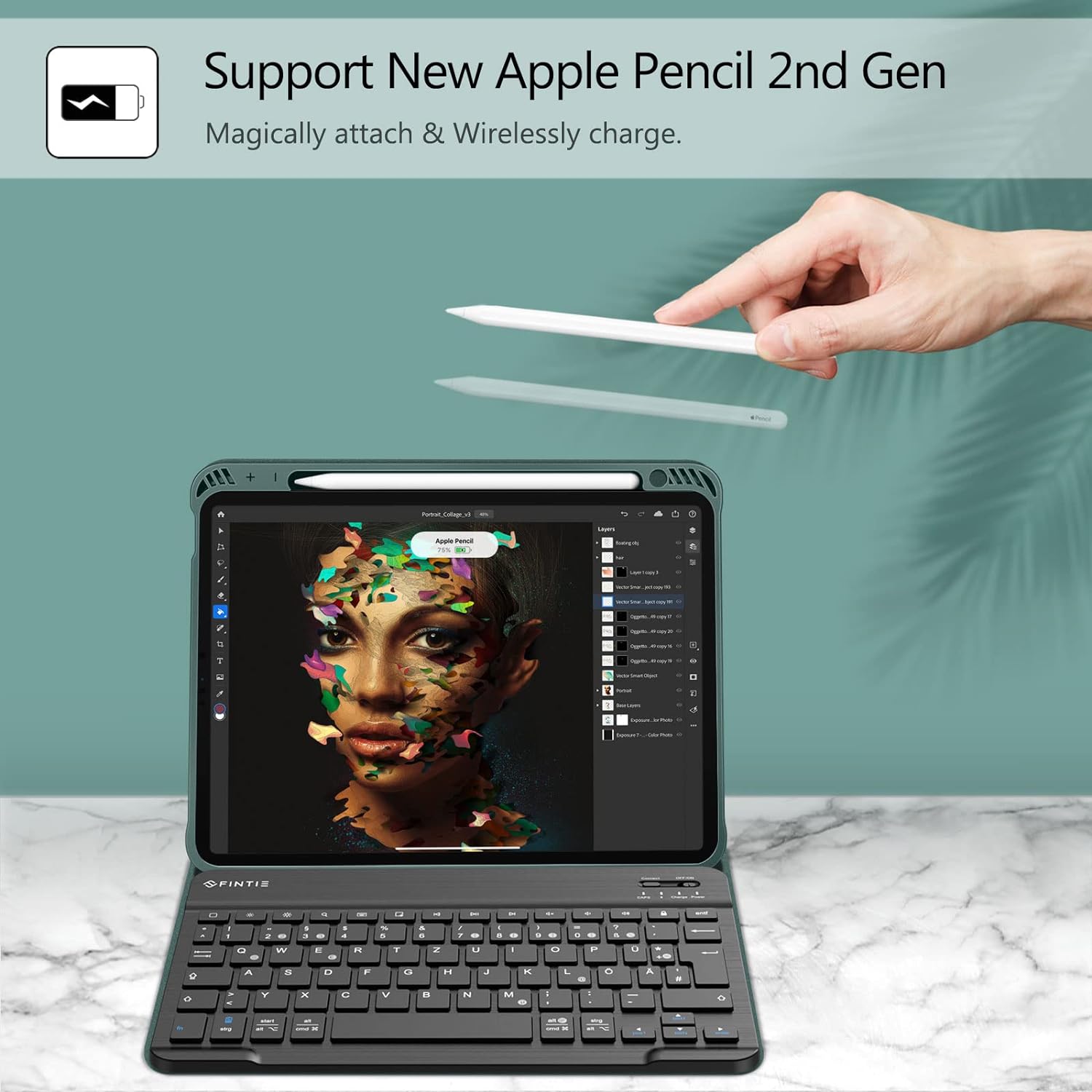 - Das magnetische Anheften sowie das schnurlose Aufladen des Apple Pencils 2nd Gen wird trotz Schutzhülle problemlos unterstützt. Mit der integrierten Stifthalterung lässt sich der Apple Pencil sicher transportieren. Präzise Ausschneidungen