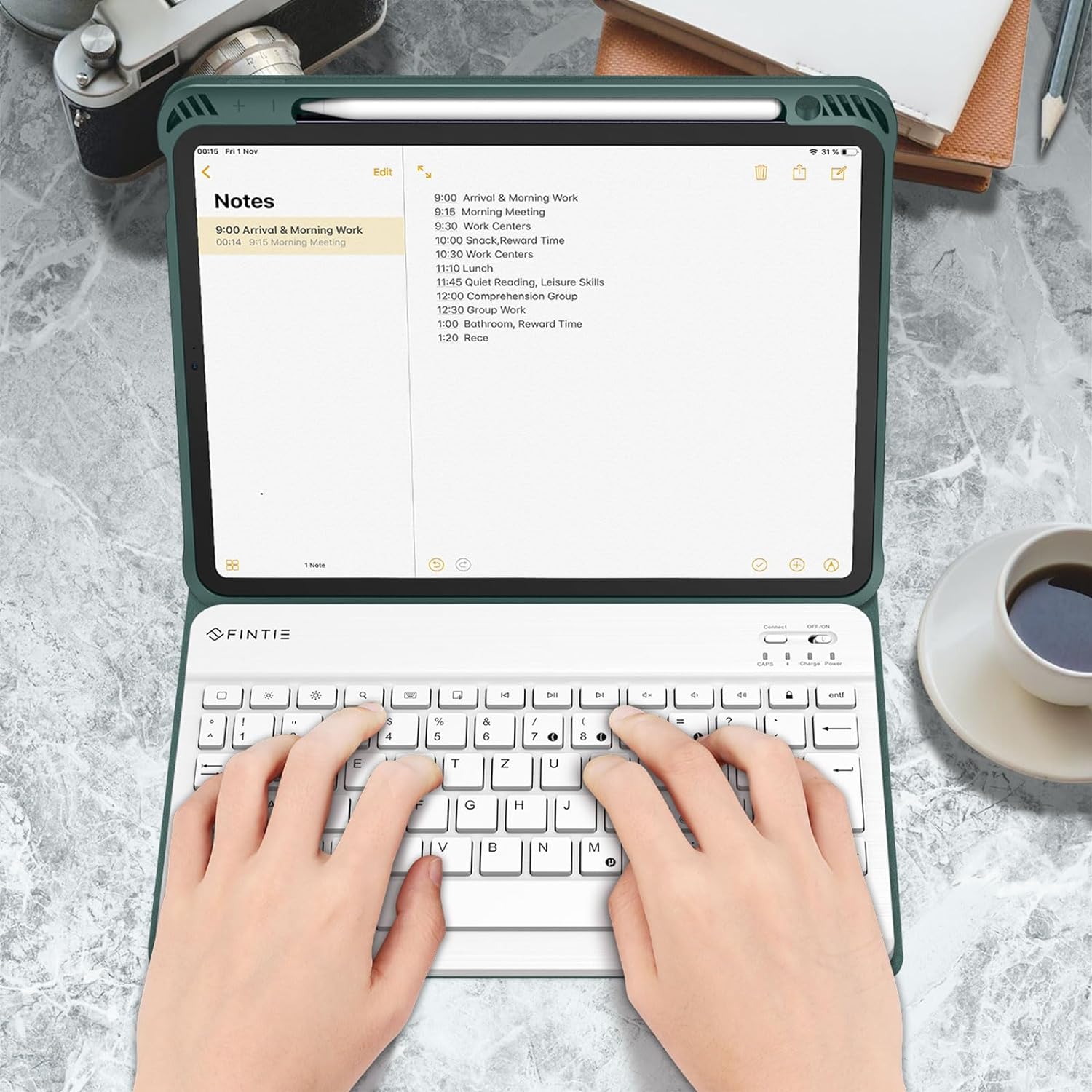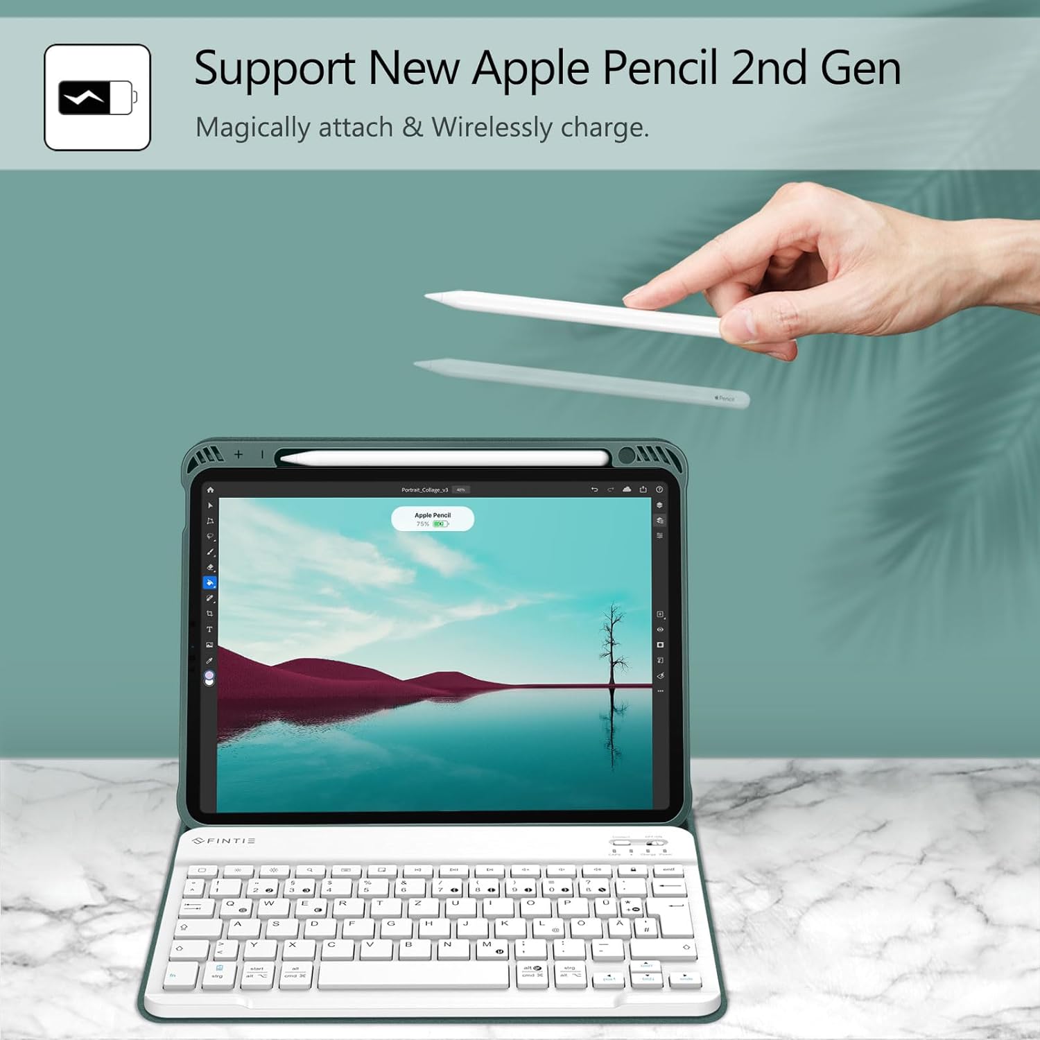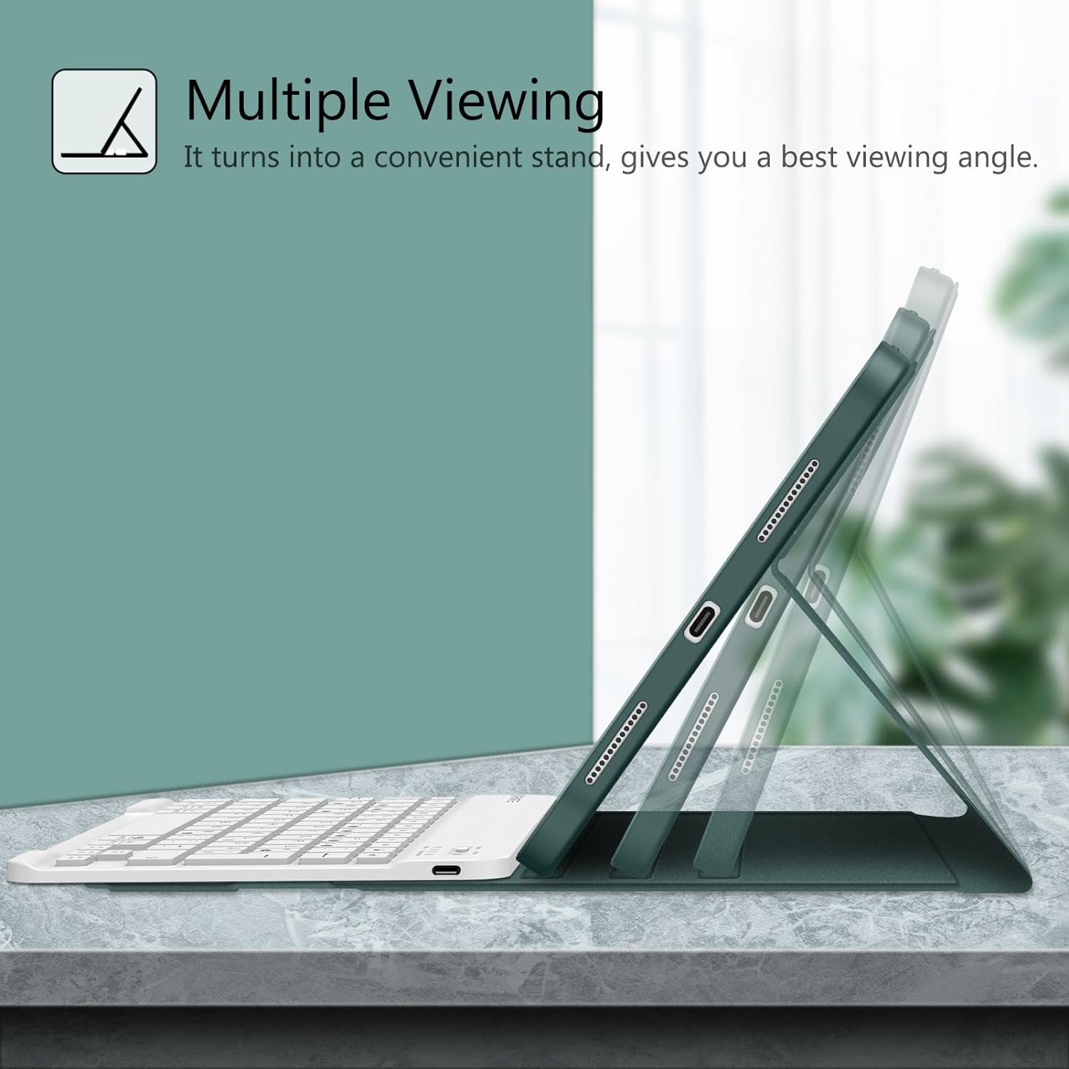 - Superschlankes Design bietet umfassenden Schutz und hat nur ein leichtes Gewicht. Der verstellbare Ständer hält Ihr iPad Air 5 / 4 sicher im Querformat. Die Reichweite der Bluetooth Tastatur ist 10 Meter. Sie verbindet problemlos und schnell mit Ihrem