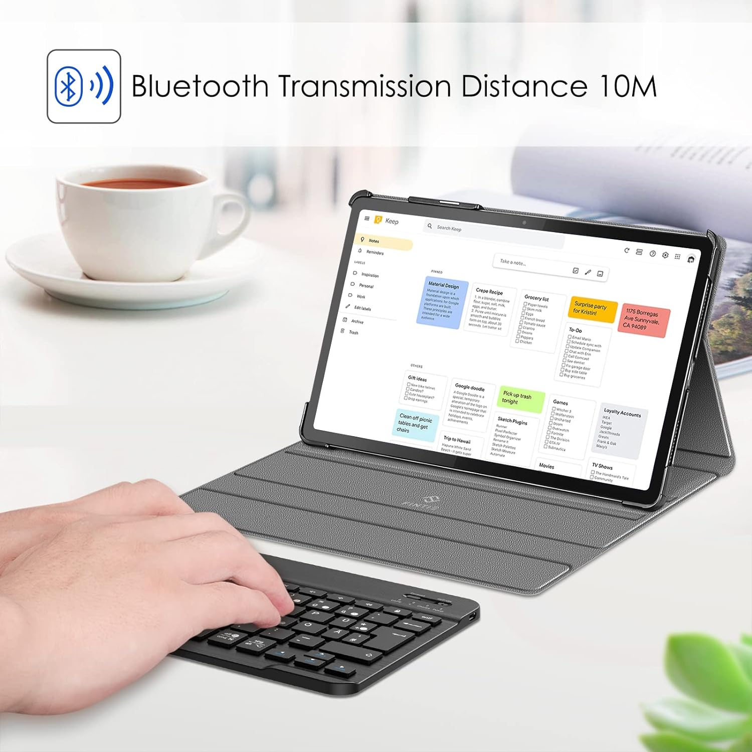 - Die Reichweite der Bluetooth Tastatur ist 10 Meter, verbindet mit Ihrem Lenovo Tablet und anderen Android Geräten (mit Bluetooth Funktion). Eingebauter Magnet stützt Auto Sleep/Wake Funktion.( Auto Sleep/Wake funktioniert NUR wenn die Tastatur