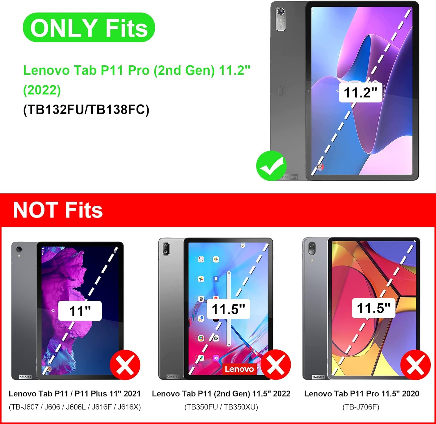 - Speziell entworfen für Lenovo Tab P11 Pro (2nd Gen) 11.2 zoll/28.44 cm (Modell TB132FU/TB138FC) 2022 Tablet PC. NICHT geeignet für Lenovo Tab P11 (2nd Gen) 11.5 zoll/29.21 cm (Modell TB350FU/TB350XU); NICHT für Lenovo Tab P11 Pro 11.5 zoll/29.2 cm