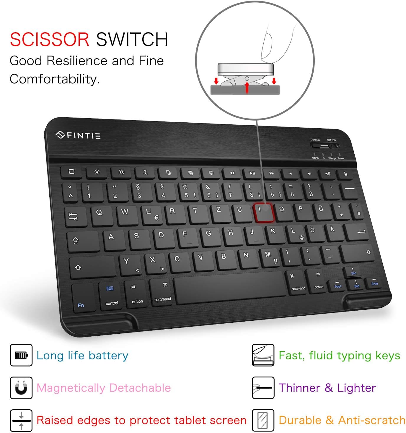 - Hergestellt aus hochwertigem ABS-Material. Keine billige Silikon-Tastatur wie bei anderen Anbietern auf dem Markt. Durch den Federmechanismus unter den Tasten, bekommen Sie beim tippen eine taktile Rückmeldung, die Ihnen hilft, schneller und
