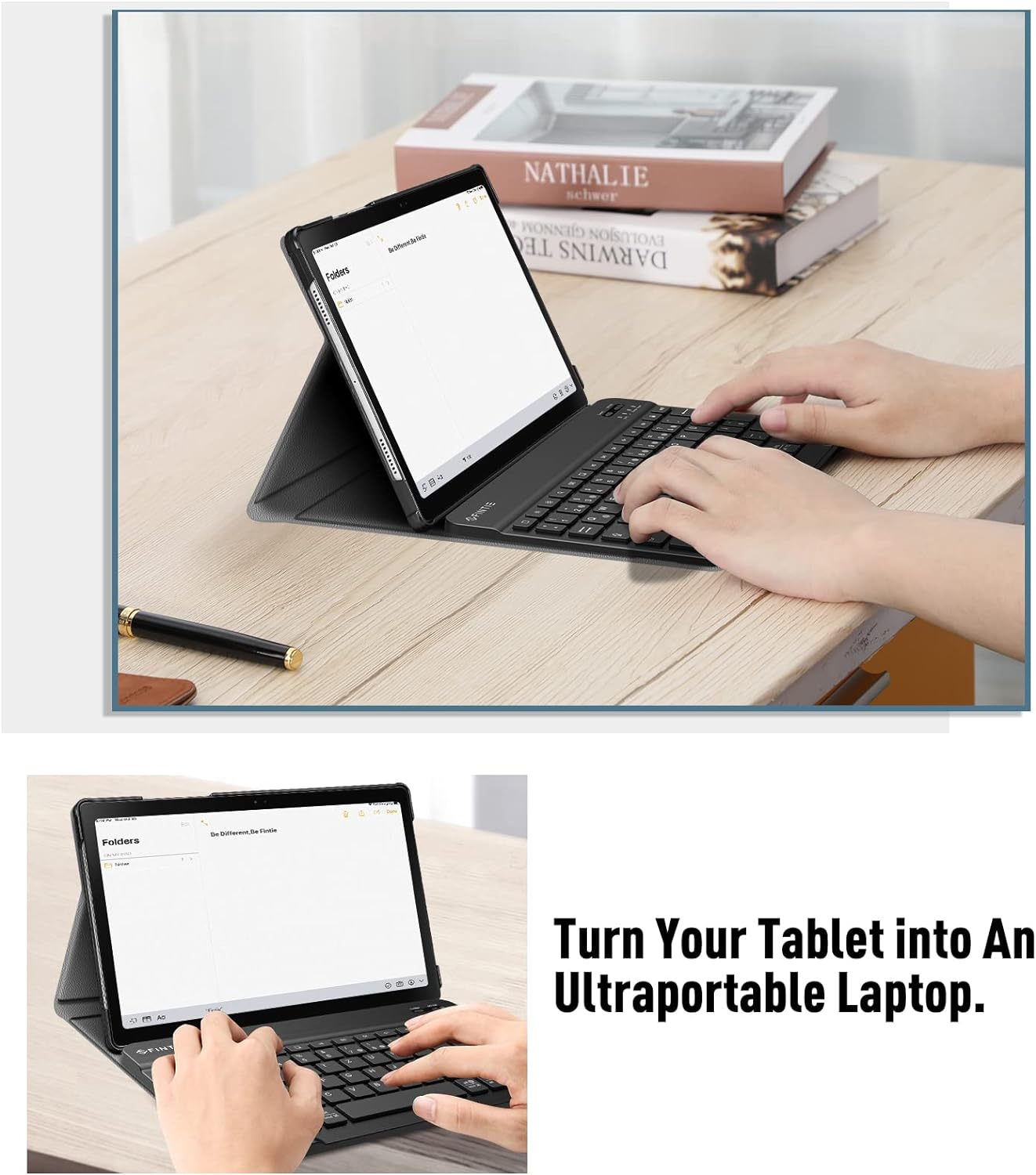 - Leicht QWERTZ Layout Tastatur - Superschlankes Design bietet einwandfreien Schutz während fügt nur gringe Gewicht zu. Die Reichweite der Bluetooth Tastatur ist 10 Meter, verbindet unbehindert mit Ihr Tab A8 10.5 und anderen Android/iOS Geräten (mit