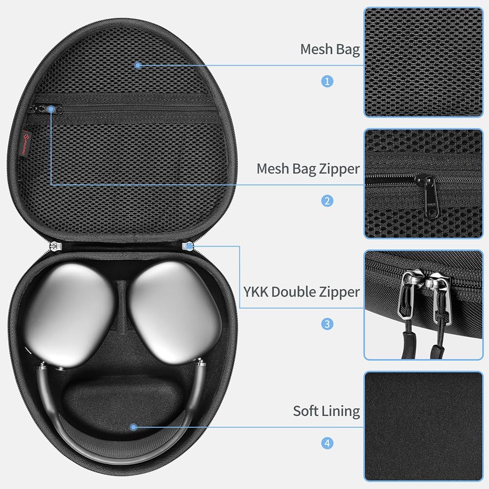 - 【Besser organisiert】 Diese AirPods Max-Tasche enthält die perfekte Netztasche mit YKK-Reissverschluss für Ihre Kabel, Ladegeräte, Ohrpolster, Adapter, ID-Karten oder anderes Zubehör.
